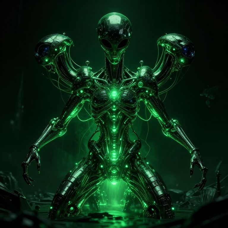 Glowing Biomechanical Alien Creature