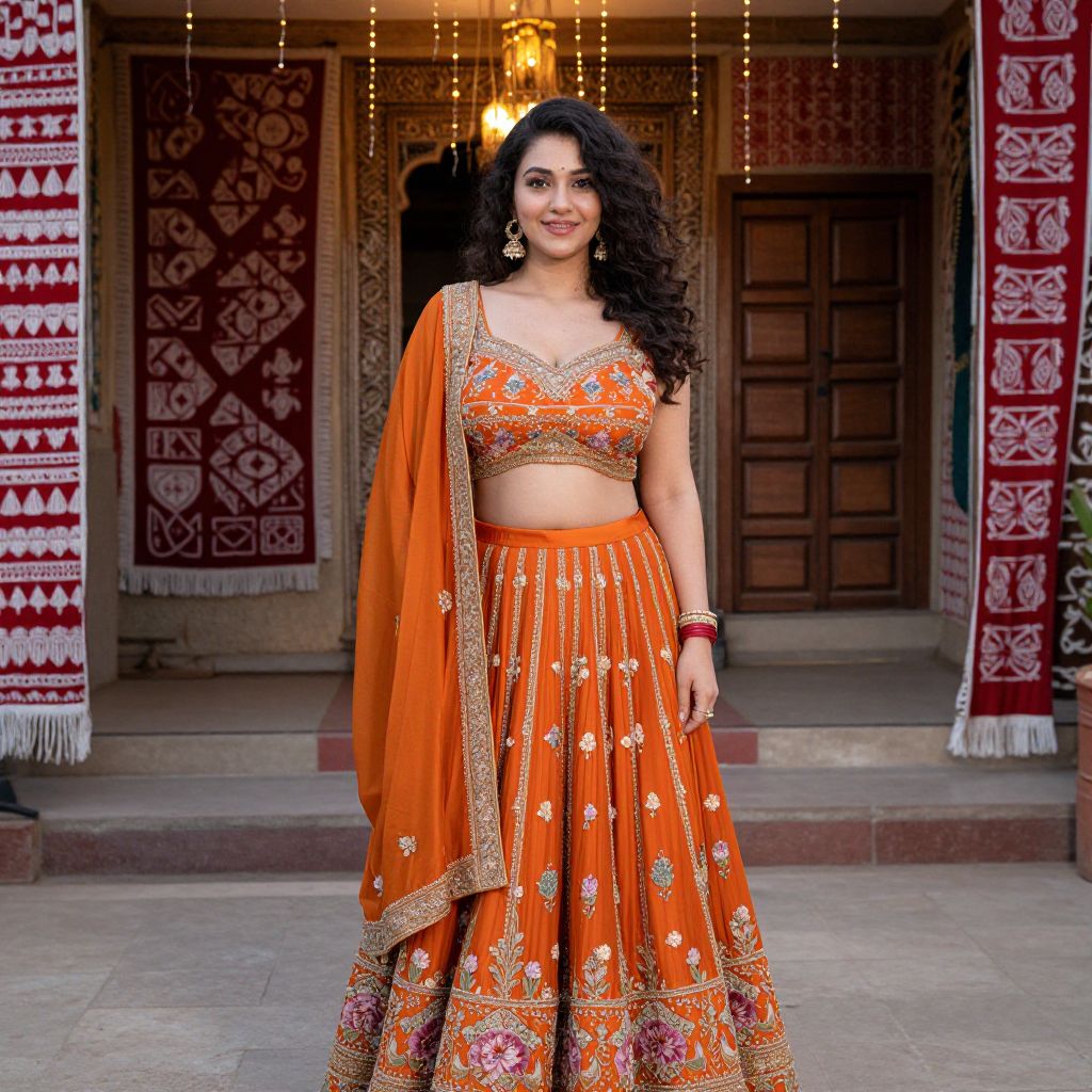Confident Woman in Orange Punjabi Lehenga