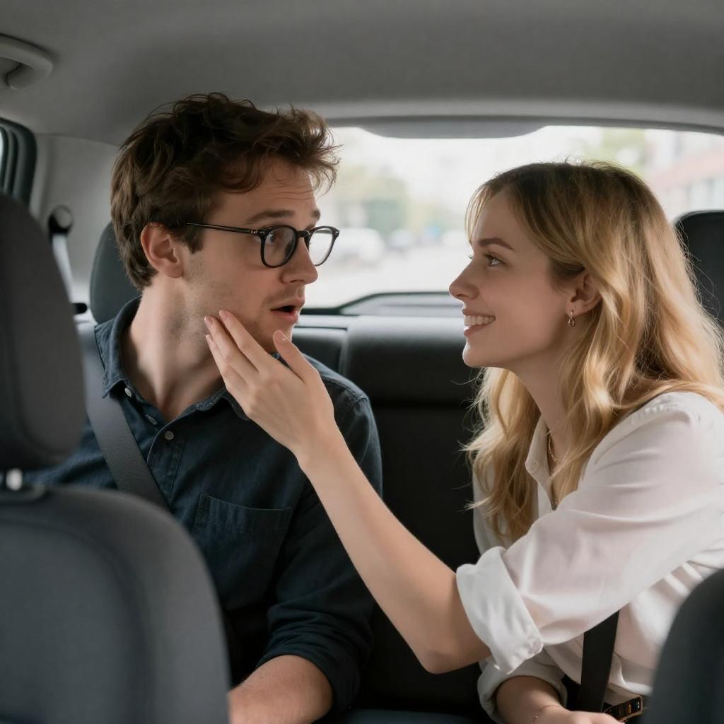 Young Couple in Car Smiling at Each Other