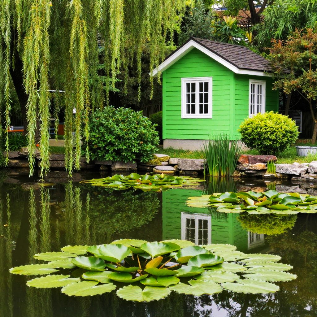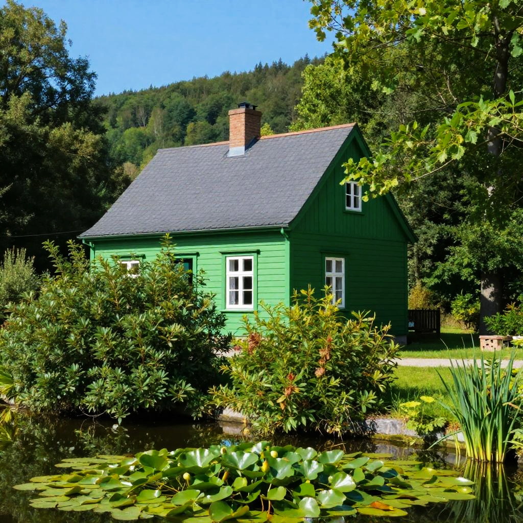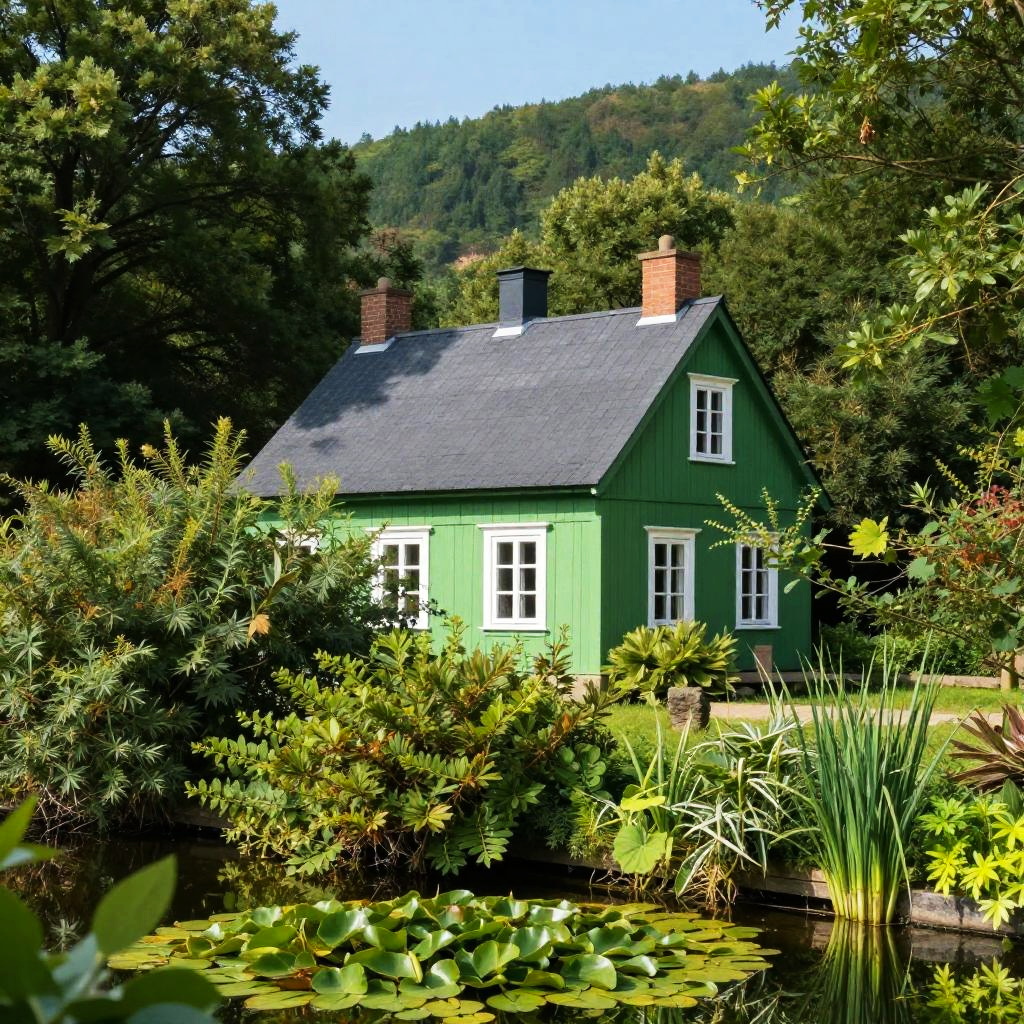 Vibrant Green Cottage Amidst Nature