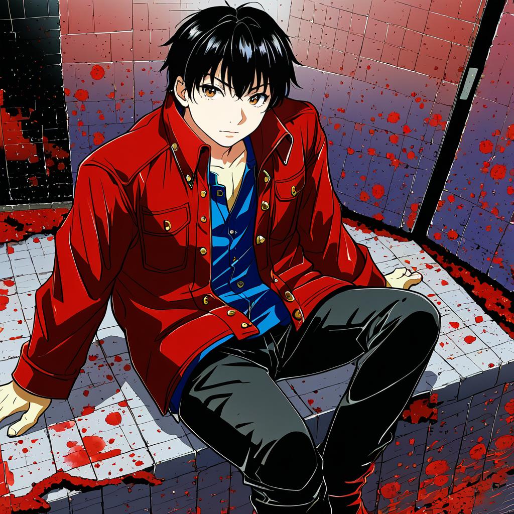 Kaneda shoutarou (akira), akira (manga), 1boy, black hair, short hair, red jacket, boots, by artist gayarou, anime