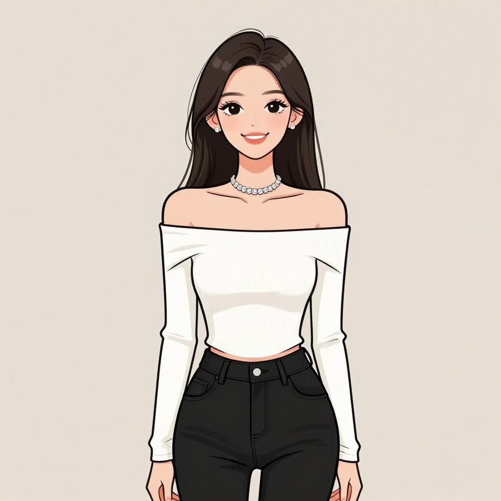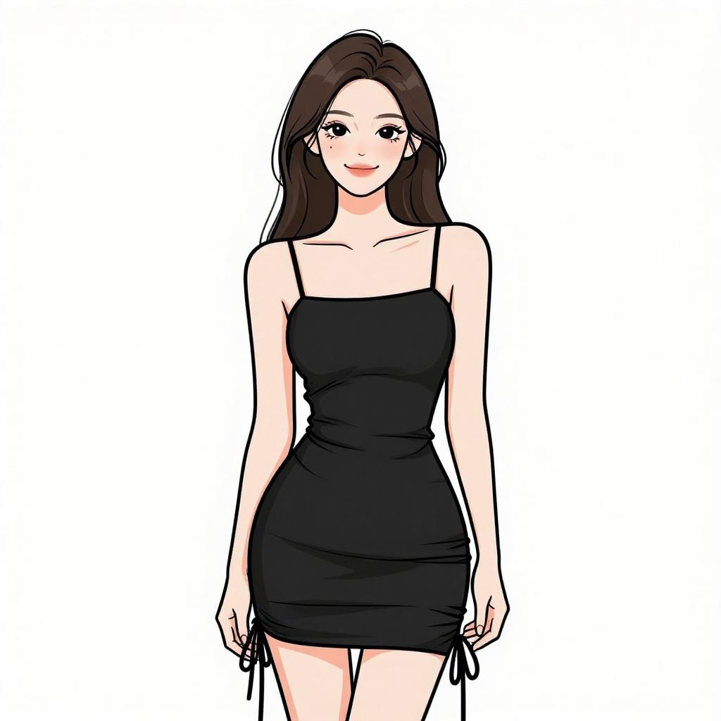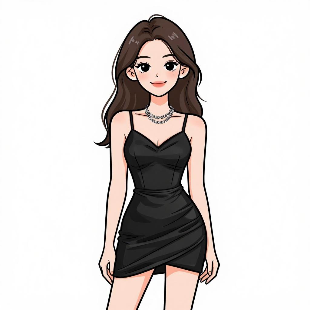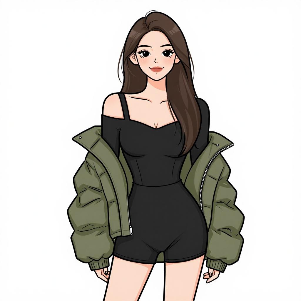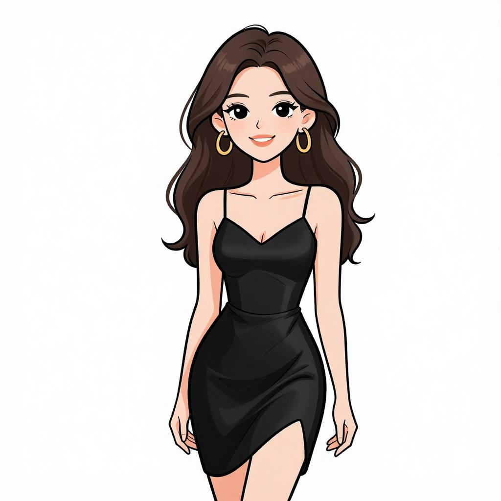 Woman with pretty face and pretty hair. smiling Woman, luxe winter chic, black velvet two-piece set, cropped bustier top, matching high-waisted mini skirt, oversized faux fur coat, knee-high suede boots in black, simple makeup, straight long hair, white studio background --sref 1467