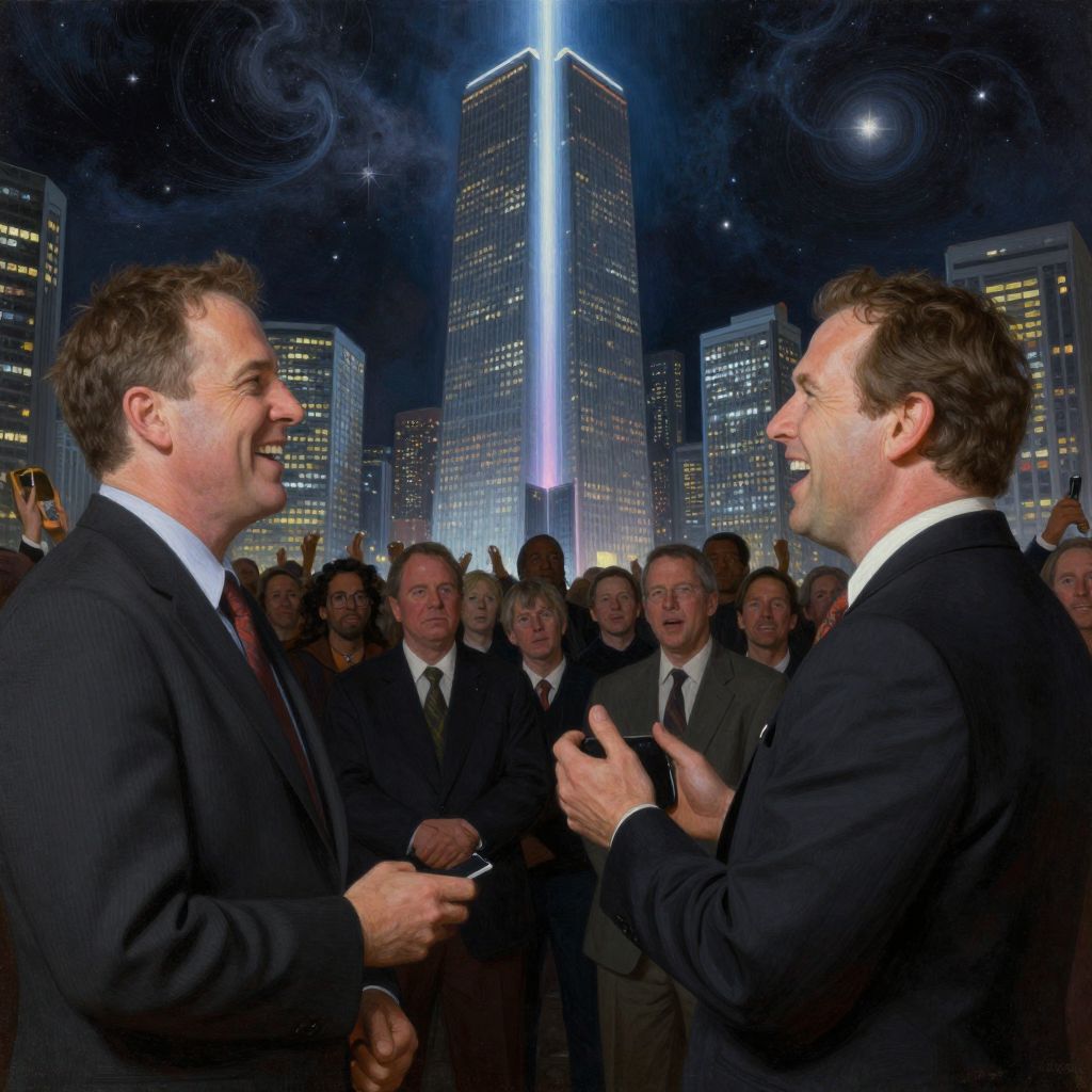 Norm macdonald laughing at a 9 / 11 tribute, cosmic horror painting, elegant intricate digital painting artstation concept art by mark brooks and brad kunkle extreme detailed