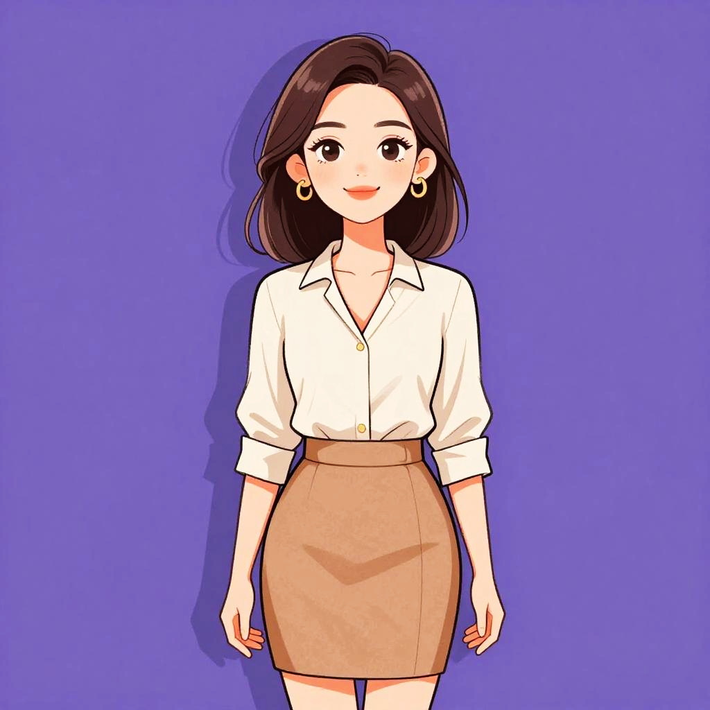 This is a bold pastel chalk-style digital portrait of a Middle Eastern teenage girl with a high ponytail and fringe, with a confident smirk, large expressive eyes, and a natural rosy glow. The subject wears a casual white blouse with clean, slightly angular seams. Minimalist, sketch-like linework, soft edges, limited palette; the background is sunset orange with blended yellow highlights. Clean composition, gentle light, balanced negative space, modern editorial illustration.