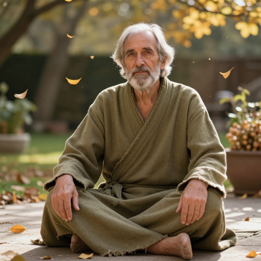Envision an elderly man, his skin marked by time and his eyes filled with deep contemplation, gazing pensively towards the distant horizon. Draped in a tattered black cloak adorned with celestial motifs that dance like living constellations against the starlit sky visible through a window, he embodies a profound connection to the cosmos. Superimposed upon him are translucent threads of cosmic matter—stars, nebulae, and galaxies intertwined in an ethereal embrace across his form. Soft moonlight illuminates the scene, casting long shadows that emphasize the contrast between the tangible world and the infinite universe, highlighting the unity of man's existence with the boundless cosmos. This image captures a moment of profound contemplation and connection to the vast expanse beyond our earthly realm, inviting viewers to reflect on life's mysteries within their own hearts.
