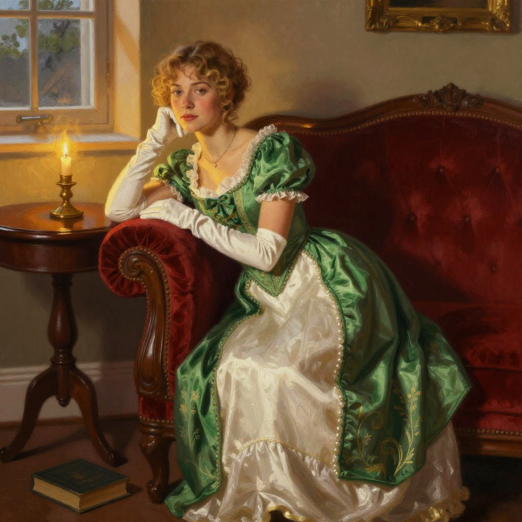 Victorian Woman Reading Realistic Portrait