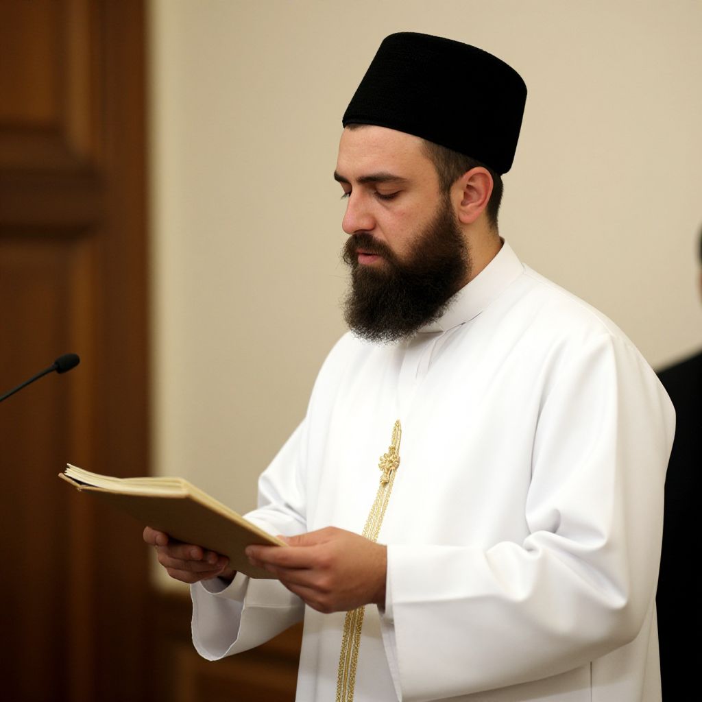 "Ultra Orthodox Clothing, man in a white robe and a black beard"