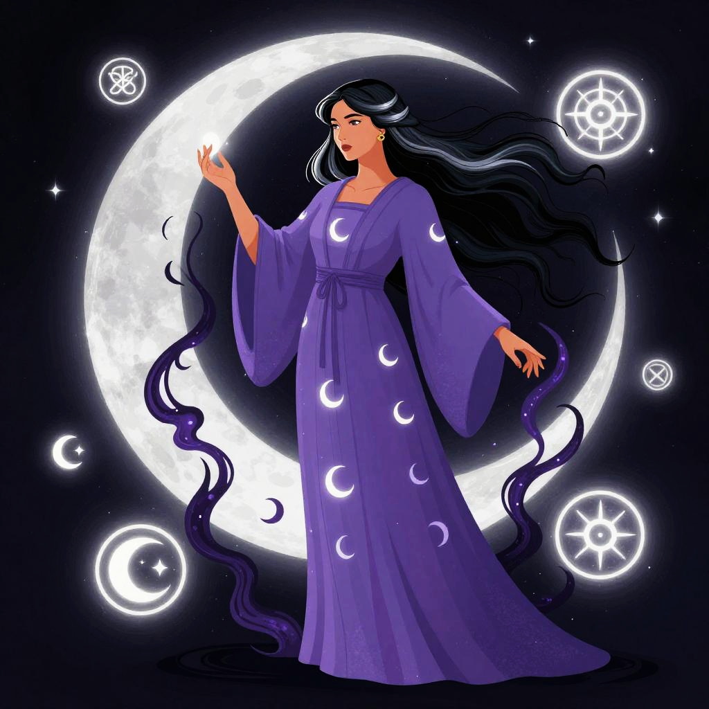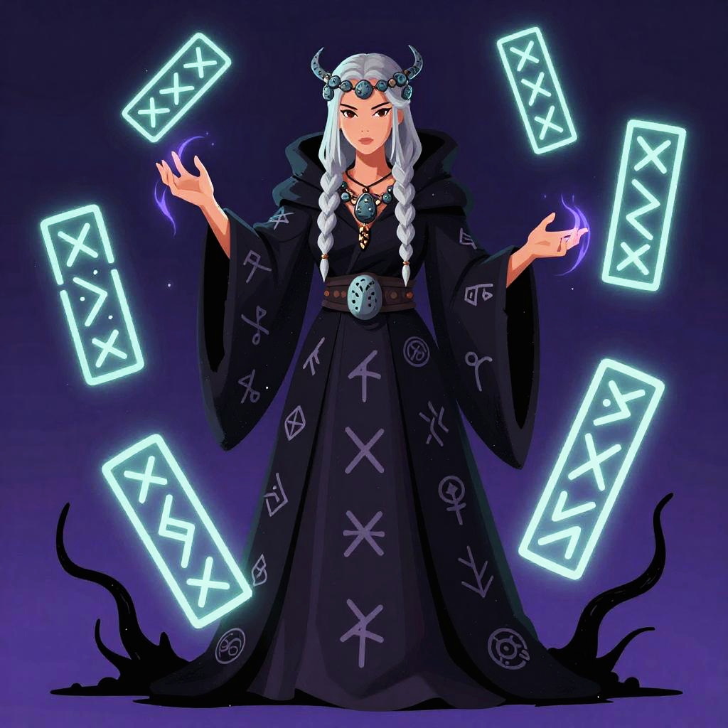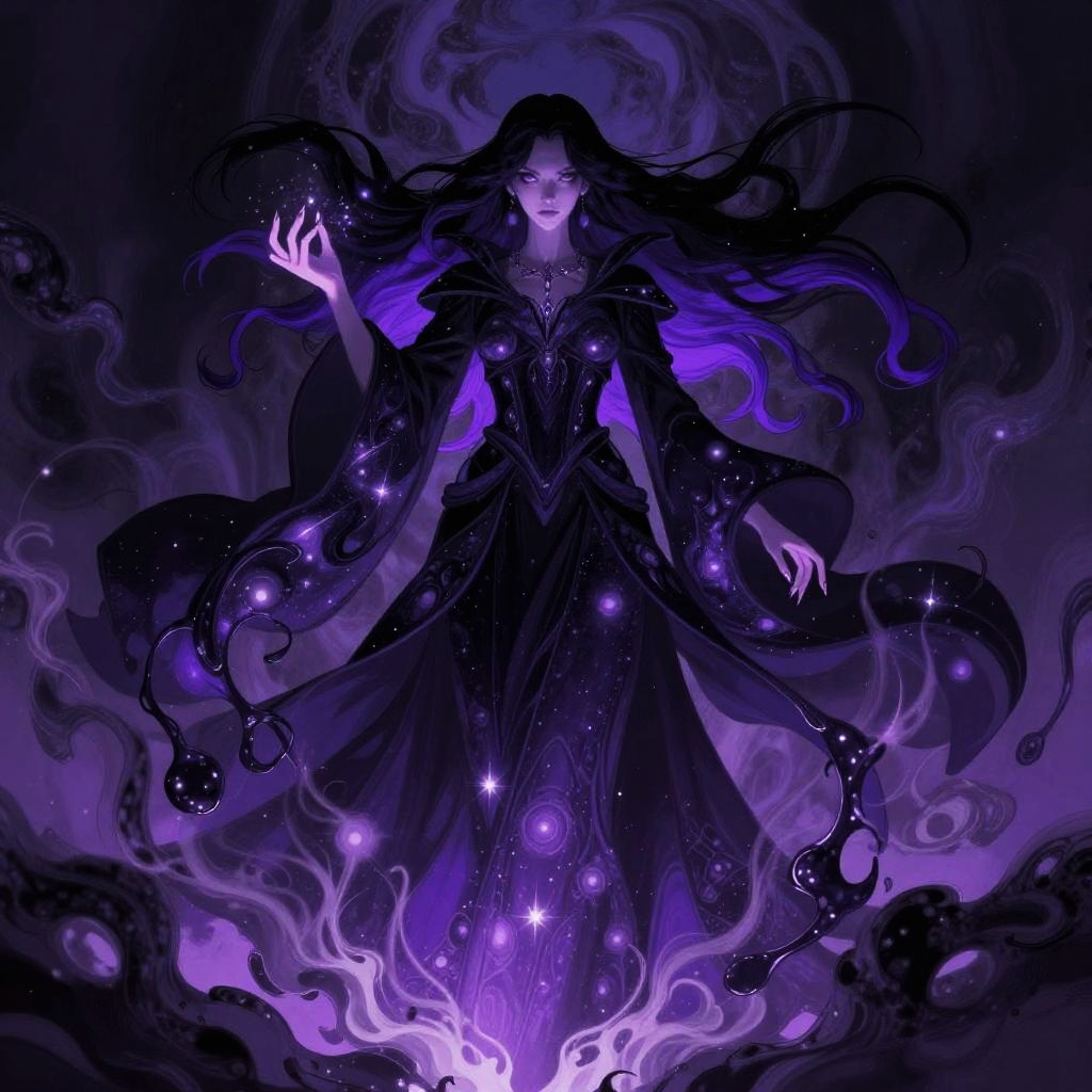 Illustration in pop art style of a mystic flame dancer, full body image, with long wavy crimson hair with flickering embers, wearing fiery patterned silk bodysuit. The character is magically controlling and enchanting whirling trails of burning sparks that dance around her, with dark magic flowing from her fingertips, rendered with vibrant, bold visuals.
