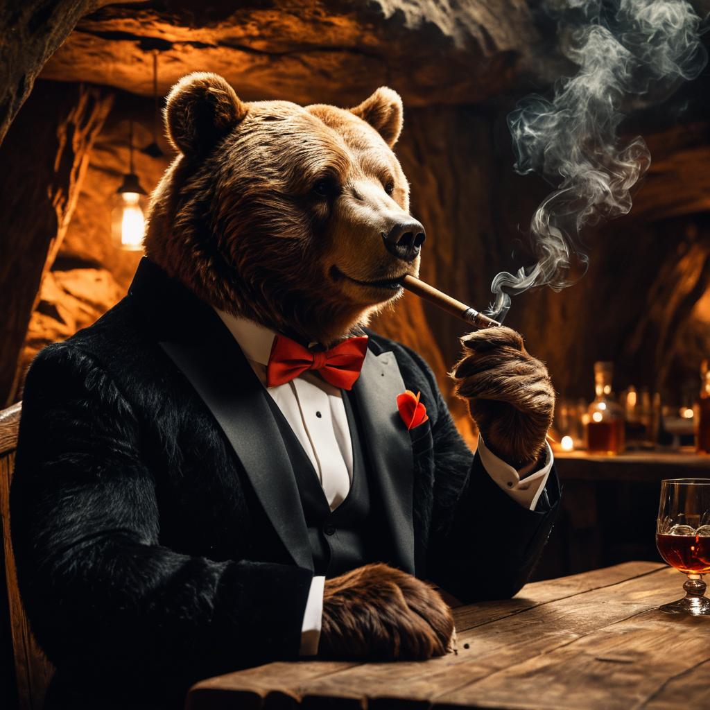 Sophisticated Bear Smoking Cigar in Cave