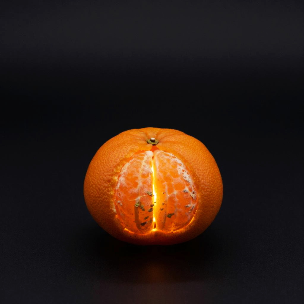 Wide shot, no humans, solo, food focus, still life, yellow banana, glowing, realistic, shadow, simple background, black background, photorealistic