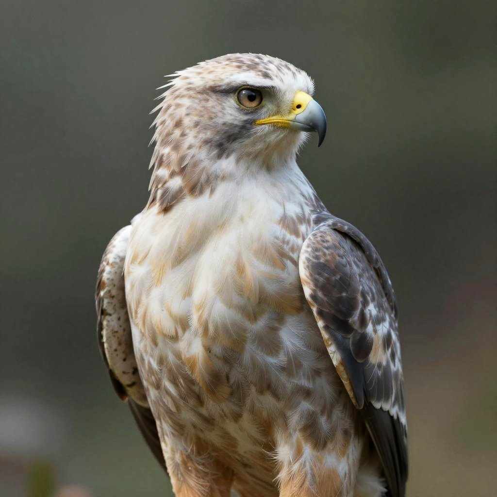 Female anthropomorphic hawk with serene expression, in impressionist style, soft lighting, delicate detail, ethereal atmosphere, rendered with Blender Cycles, hyperrealistic