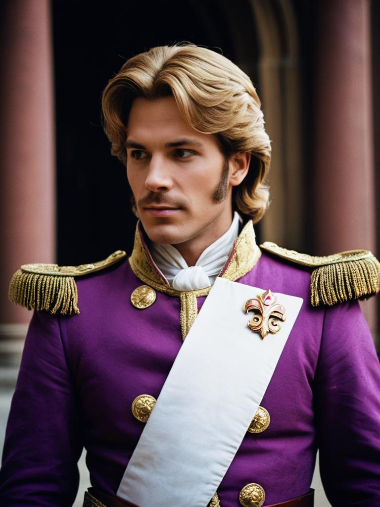 Man in Prince Adam Costume, cinematic realism, heroic noble portrait