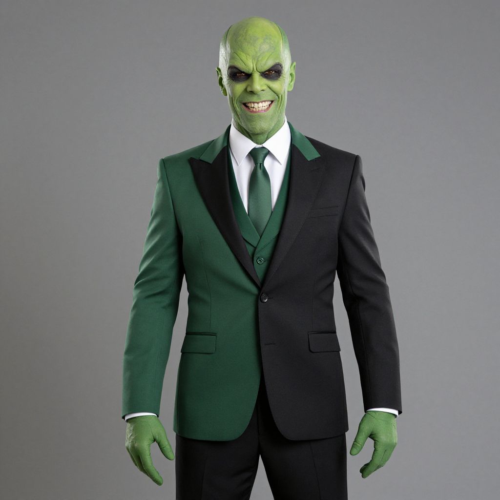 Sam Raimi Green Goblin Costume, male in a green and black suit and tie
