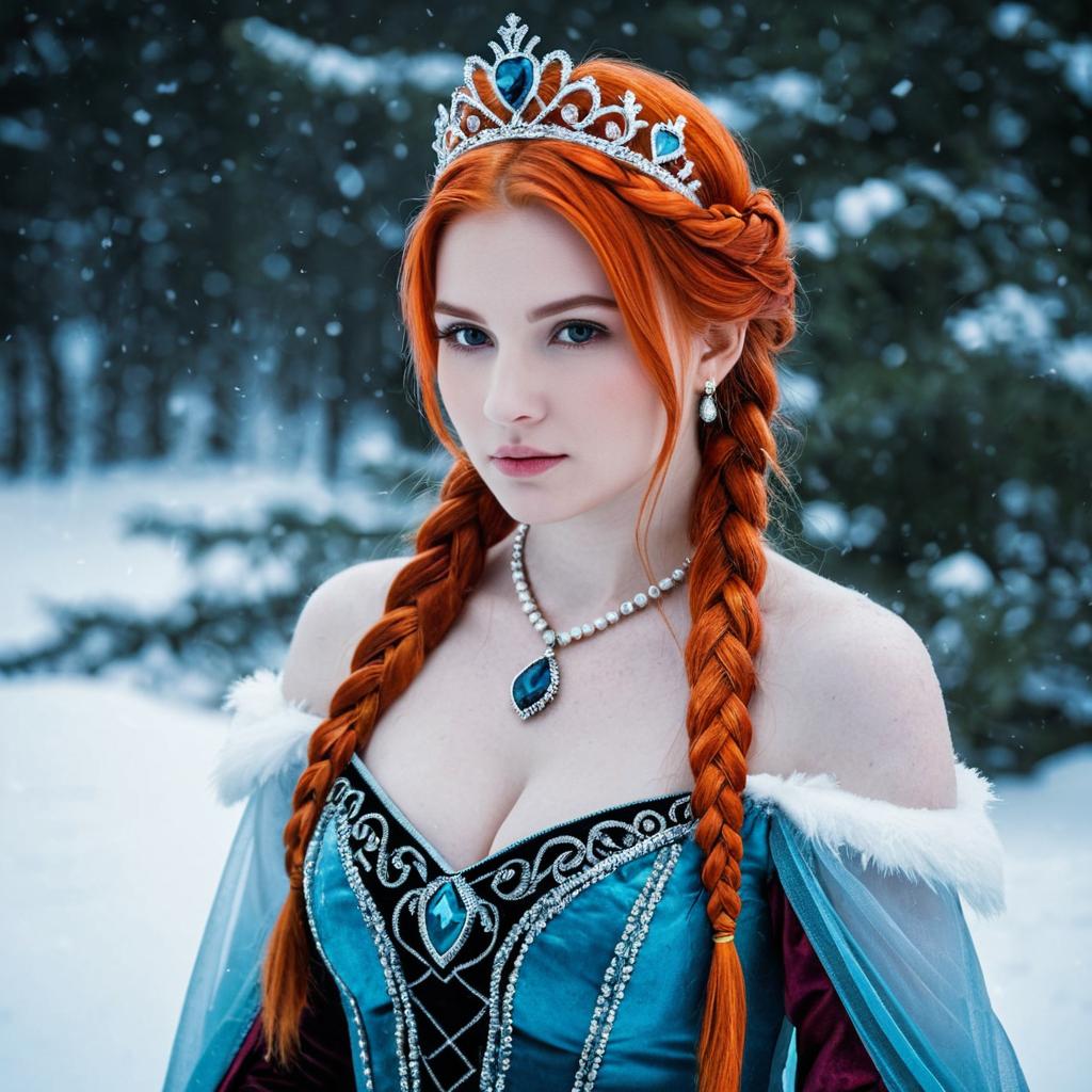 Renaissance princess outfit,1girl, jewelry, solo, earrings, dress, long hair, braid, orange hair, puffy sleeves, necklace, looking at viewer, juliet sleeves