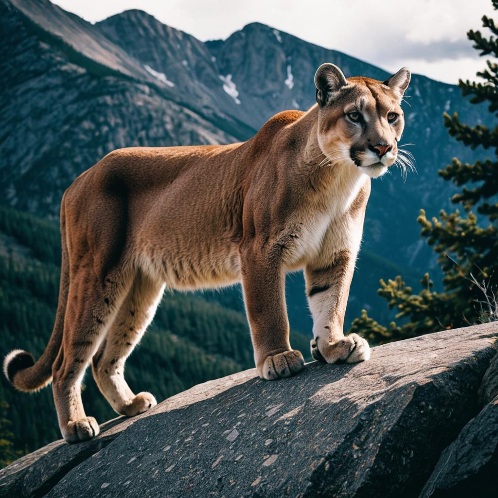A breathtaking and ultra-realistic 8K photograph showcasing the raw power and majesty of a cougar, the king of the rocky mountains.