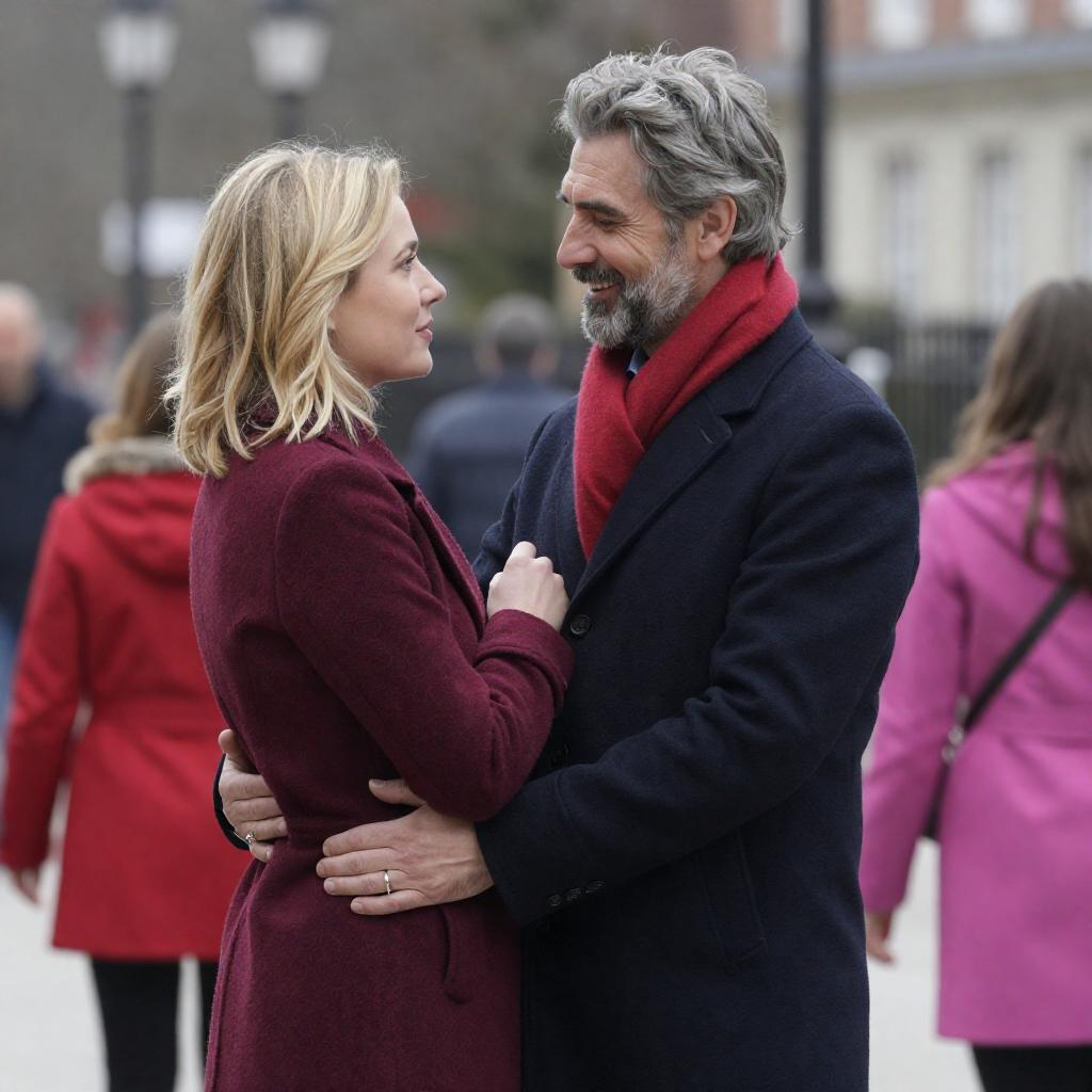Smiling Couple Strolling by Stone Building