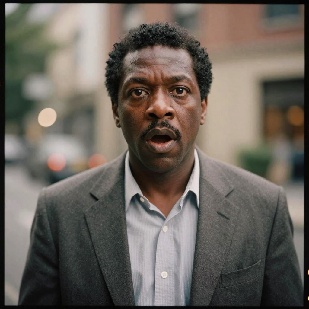 Cinematic photo photograph, Kodak portra 800, Omar Little . 35mm photograph, film, bokeh, professional, 4k, highly detailed, a look of shock