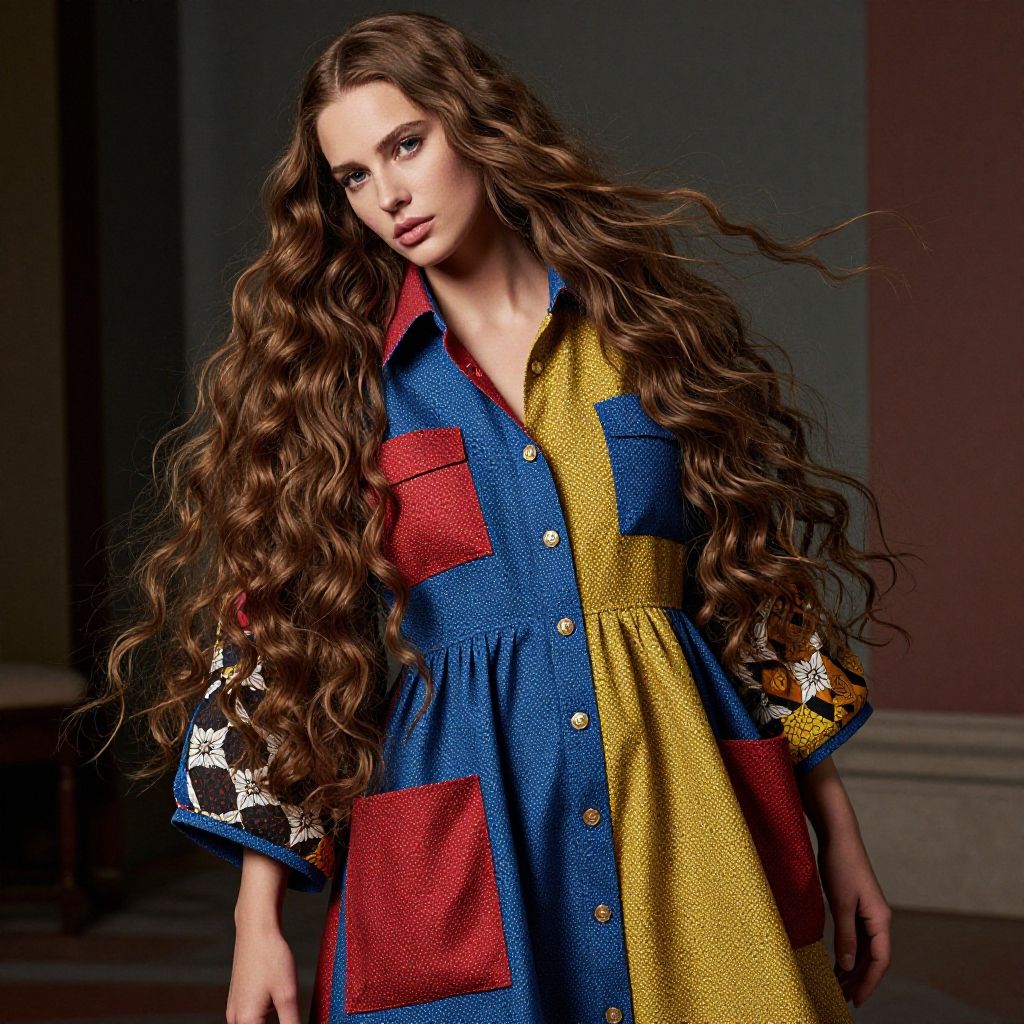 Masterpiece, amazing quality, best quality, high resolution, 4K, 8K, UHD, photorealistic, hyper-realistic, Professional fashion photograph, beautiful and aesthetic, Renaissance, by alex ross and jean-fran├зois millet, 1girl, solo, supermodel, detailed beautiful face and eyes, intricate details long hair, perfect anatomy, stylish, shirt dress with oversized pockets and a relaxed fit, clothes designed by Takami Akai and Donatella Versace, relaxed pose, regretful, dynamic angle, cinematic, ultra detailed, extremely detailed, intricate details, colorful minimalism, sharp image quality, crisp detail, crisp edges, fine texture, detailed rendering, majestic composition, textured, high contrast, advanced lighting techniques, LUT, high dynamic range, vivid and accurate colors, harmonious color scheme, meticulously detailed, visually stunning, emotionally engaging, sharp contrast, digital painting quality, cinematic quality, subtle shadows, Complex Shading, Immersive Depth, Advanced Rendering, Depth of Field, sharp focus, Depth and Perspective, bokeh, film grain