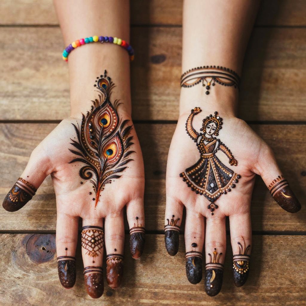 Intricate Henna Hands in Traditional Attire