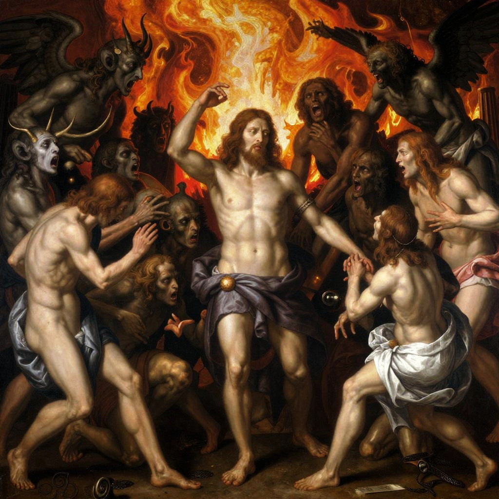Bosch Dante's Inferno depiction, chaotic underworld filled with grotesque creatures and souls in anguish, rich textures, Renaissance-inspired dark fantasy, fiery abyss background