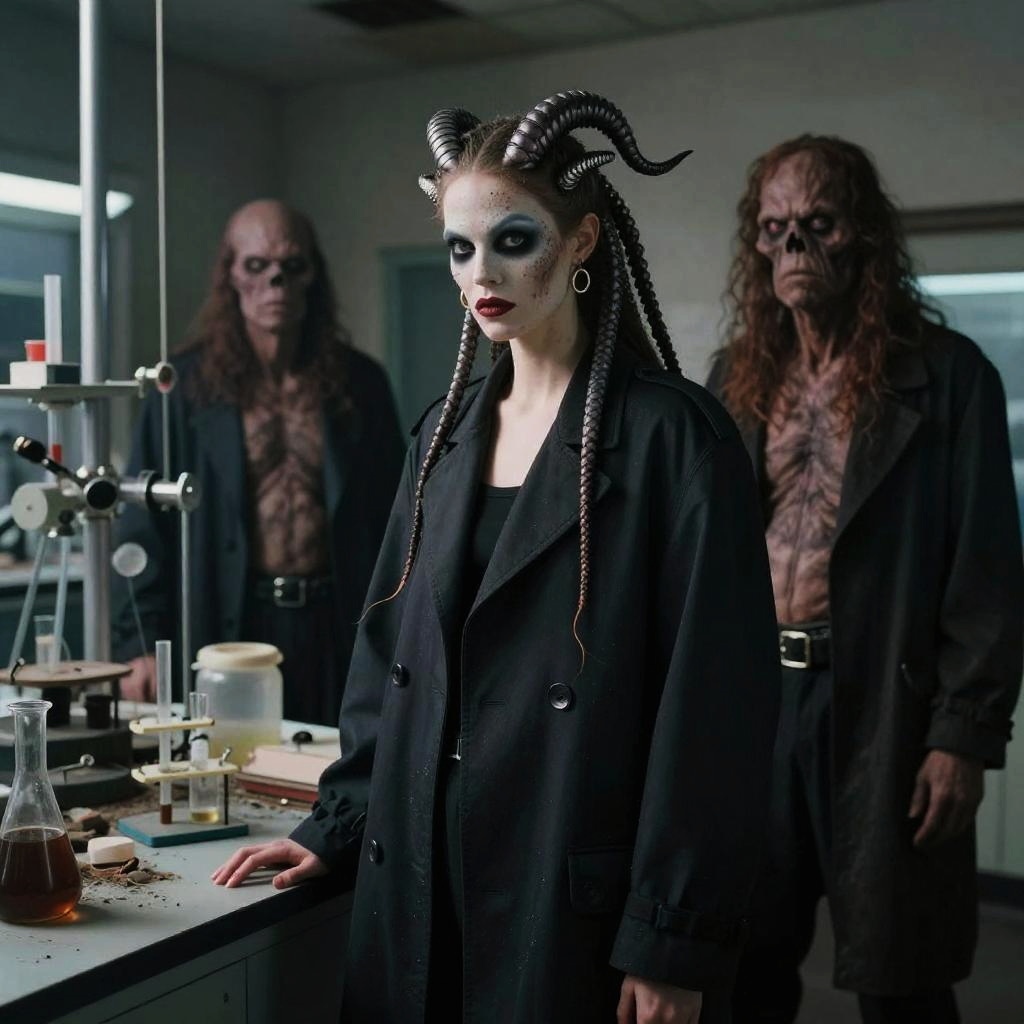 Realistic photo.Retro Trends A Balenciaga fashion photoshoot modeled by famous monsters. Hydra as the model, shot by Annie Leibovitz. The shoot takes place in an abandoned laboratory. The atmosphere is eerie and creepy, with a sense of otherworldliness. The style is fine art photography, shot with a Hasselblad X1D II 50C. realistic photo