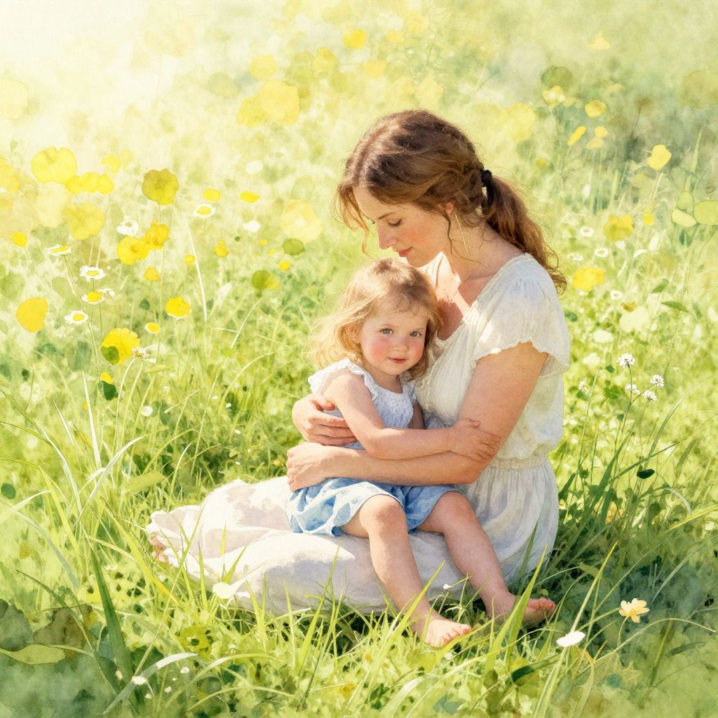Tender Mother and Child in Meadow