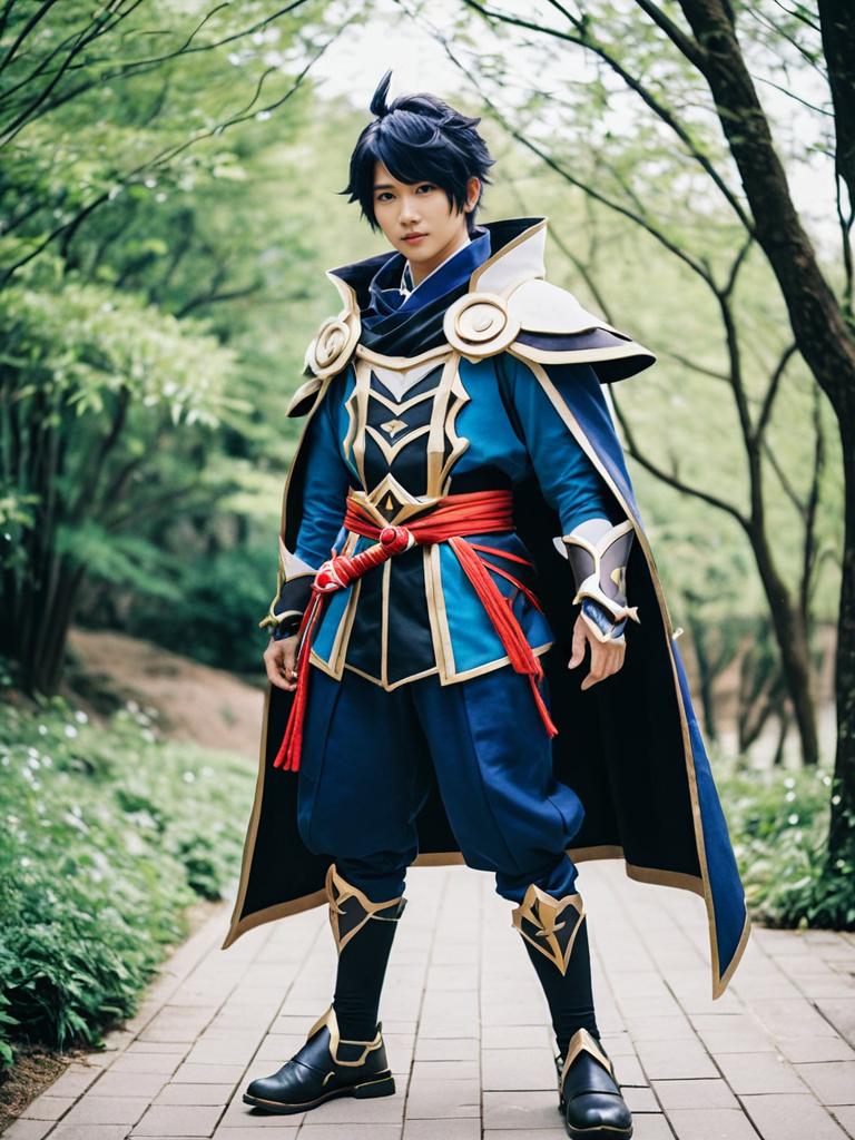 Man in Childe Genshin Costume, candid cosplay portrait at anime convention