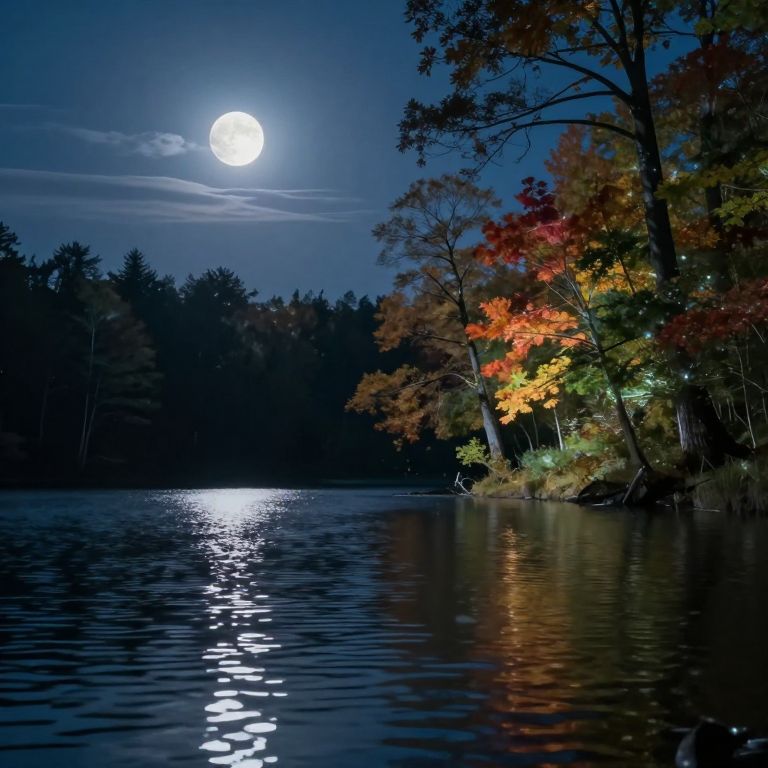 A mesmerizing impressionistic landscape captures the serene beauty of a tranquil lake reflecting the soft glow of a crescent moon, with wispy tendrils of mist dancing gracefully across its surface. An ancient, majestic tree stands sentinel at the water's edge, its gnarled roots submerged beneath the calm waters, creating an atmosphere of mystery and contemplation. Viewed from a low-angle perspective as if lying on the lakeshore, this captivating scene invites viewers to delve into their own emotions while immersed in the enchanting beauty of nature's secrets.