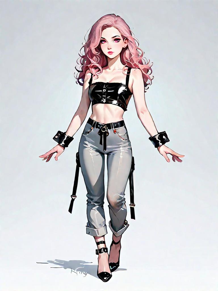 Fashionable Woman with Pink Hair and High-Waisted Shorts