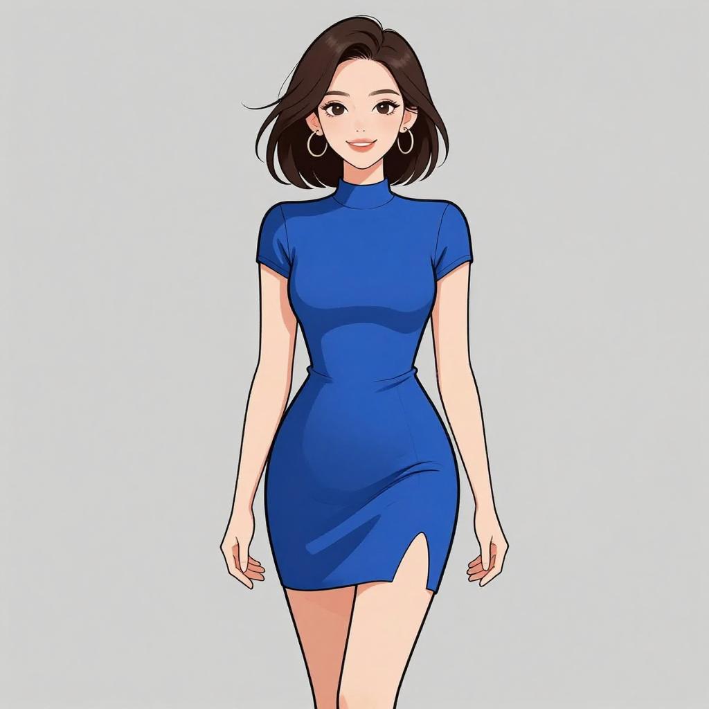 Chic Woman in Royal Blue Dress