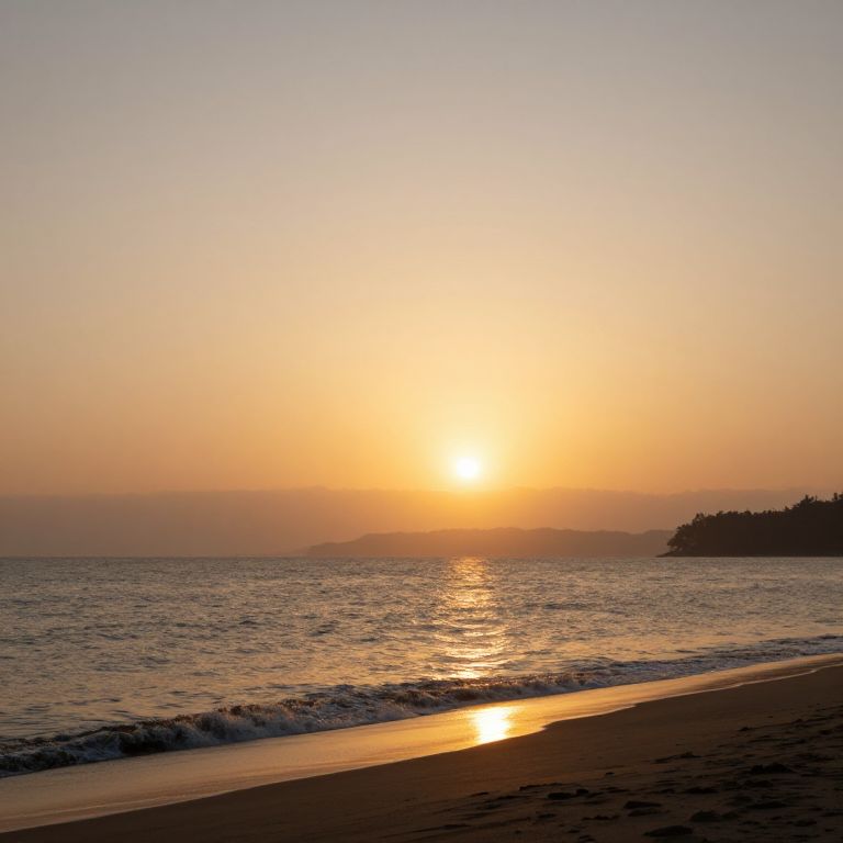 An ethereal sunset bathes the shore in golden hues, inviting contemplation of life's transient beauty and the eternal embrace of nature’s rhythm.
