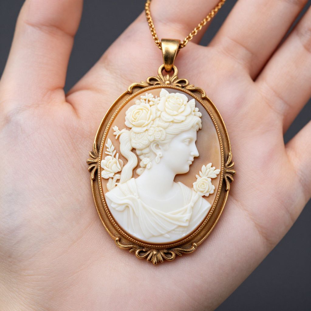 Vintage Cameo Pendant with Roses