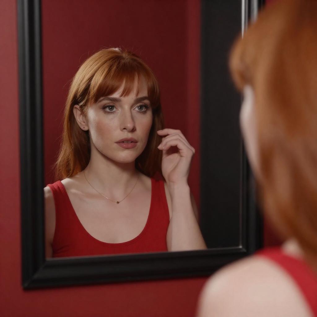 Pensive Auburn-Haired Woman in Plaid