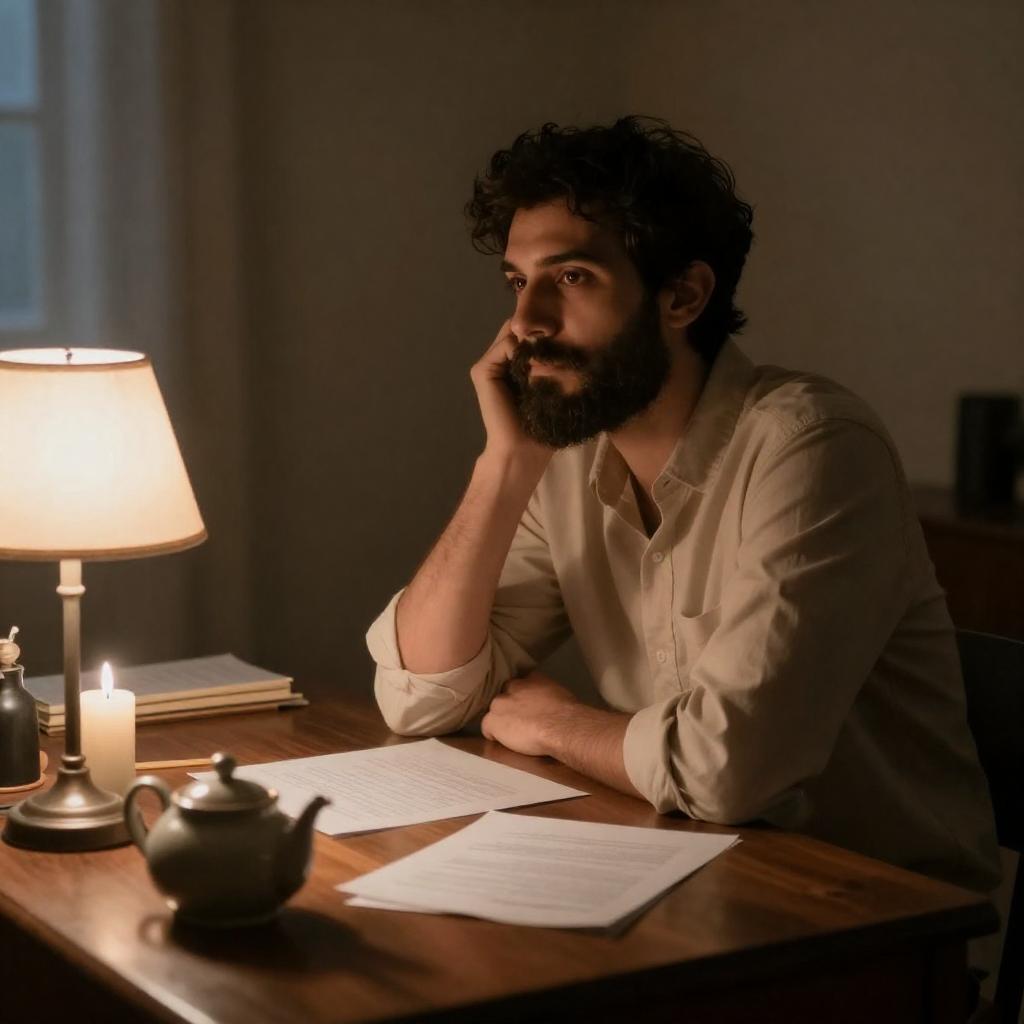 Bearded Man Lighting Candles in Darkness
