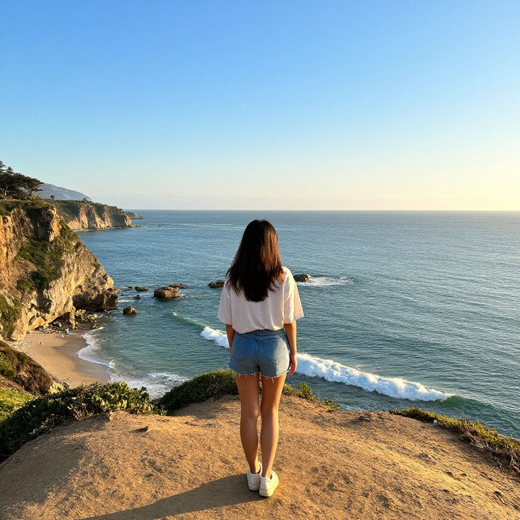 Serene Coastal View with Woman