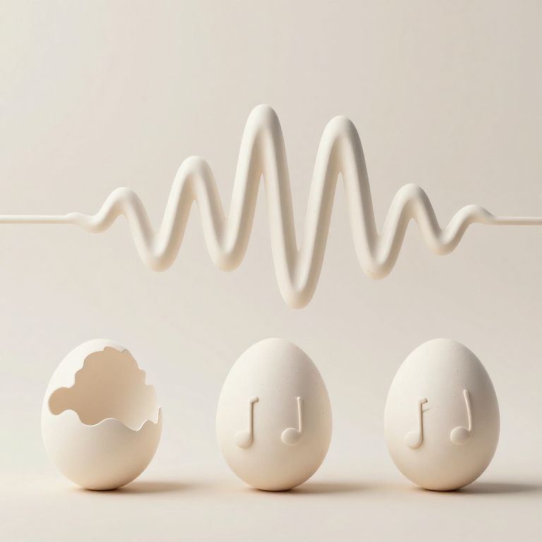 Eggs hatch into sculpted soundwaves, each melody forming a new life that hums as it evolves into orchestral creatures of air.
