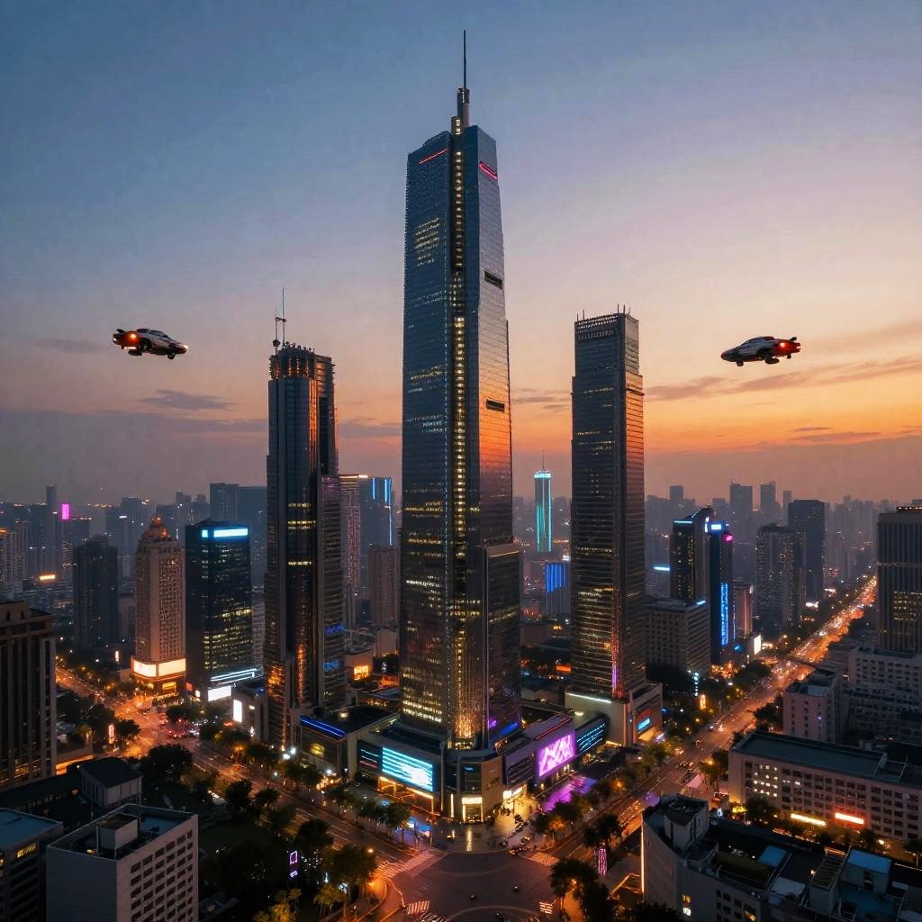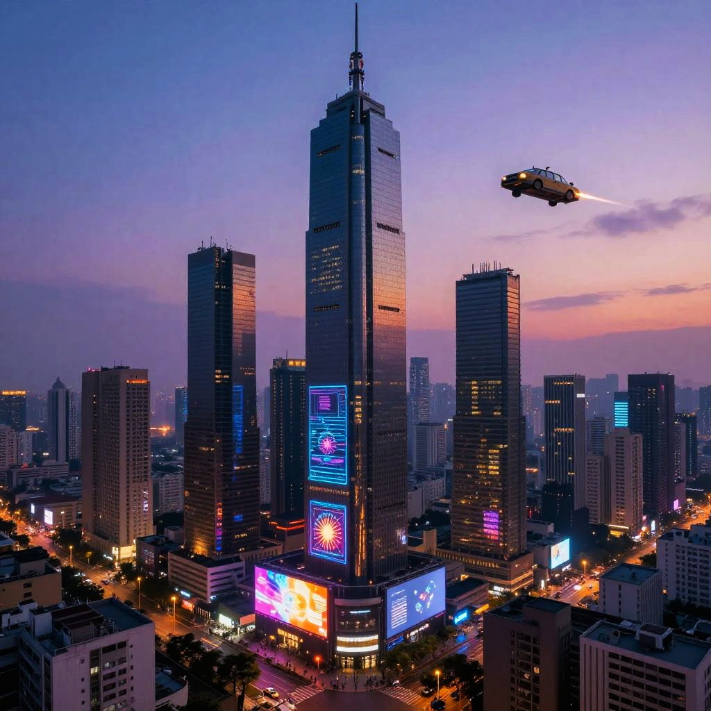 Futuristic Neon Cityscape at Sunset