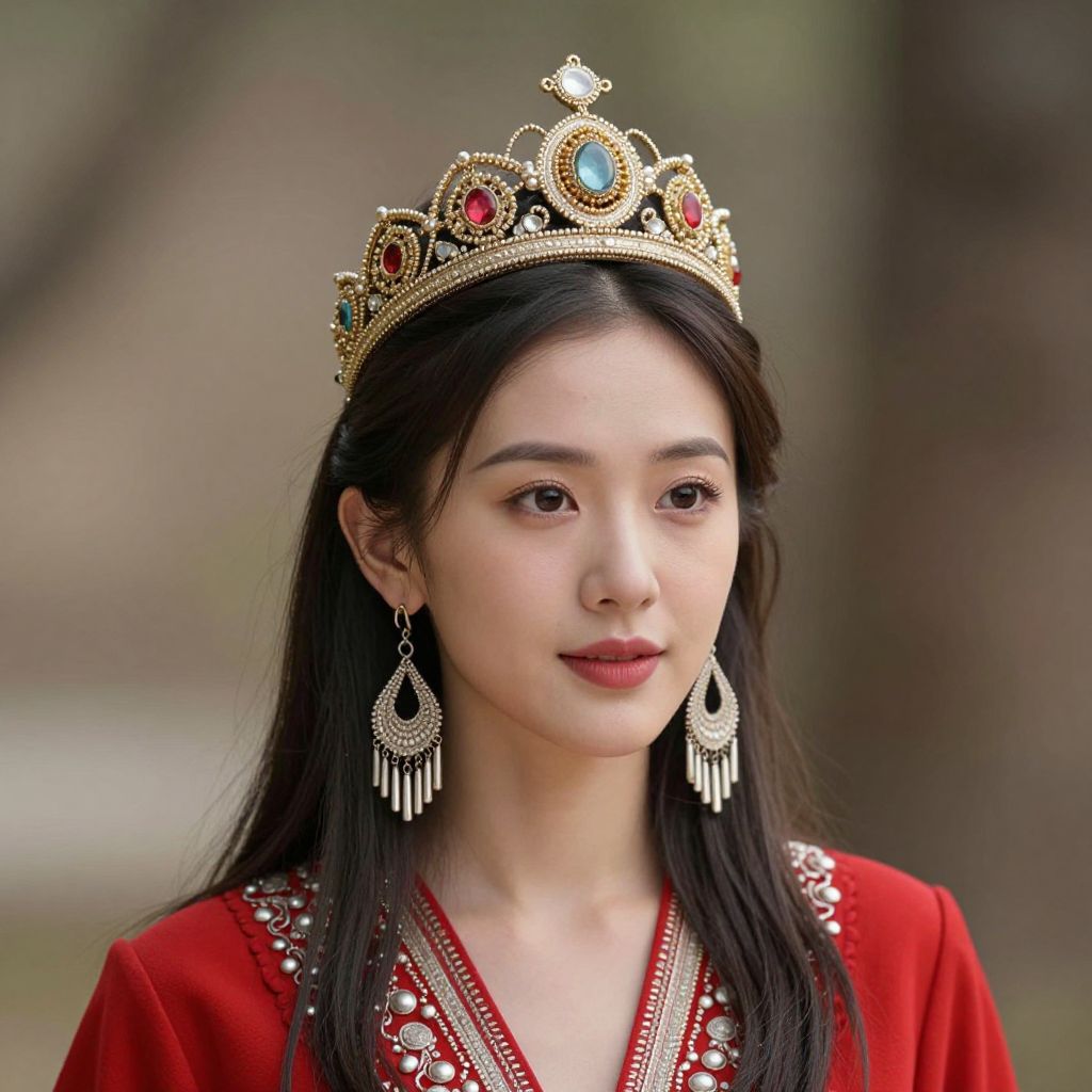 Red Indian Costume, a close up of a woman in a red dress and a crown