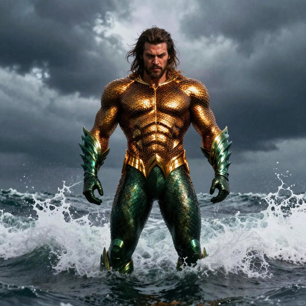 Aquaman Heroic Pose on Shore