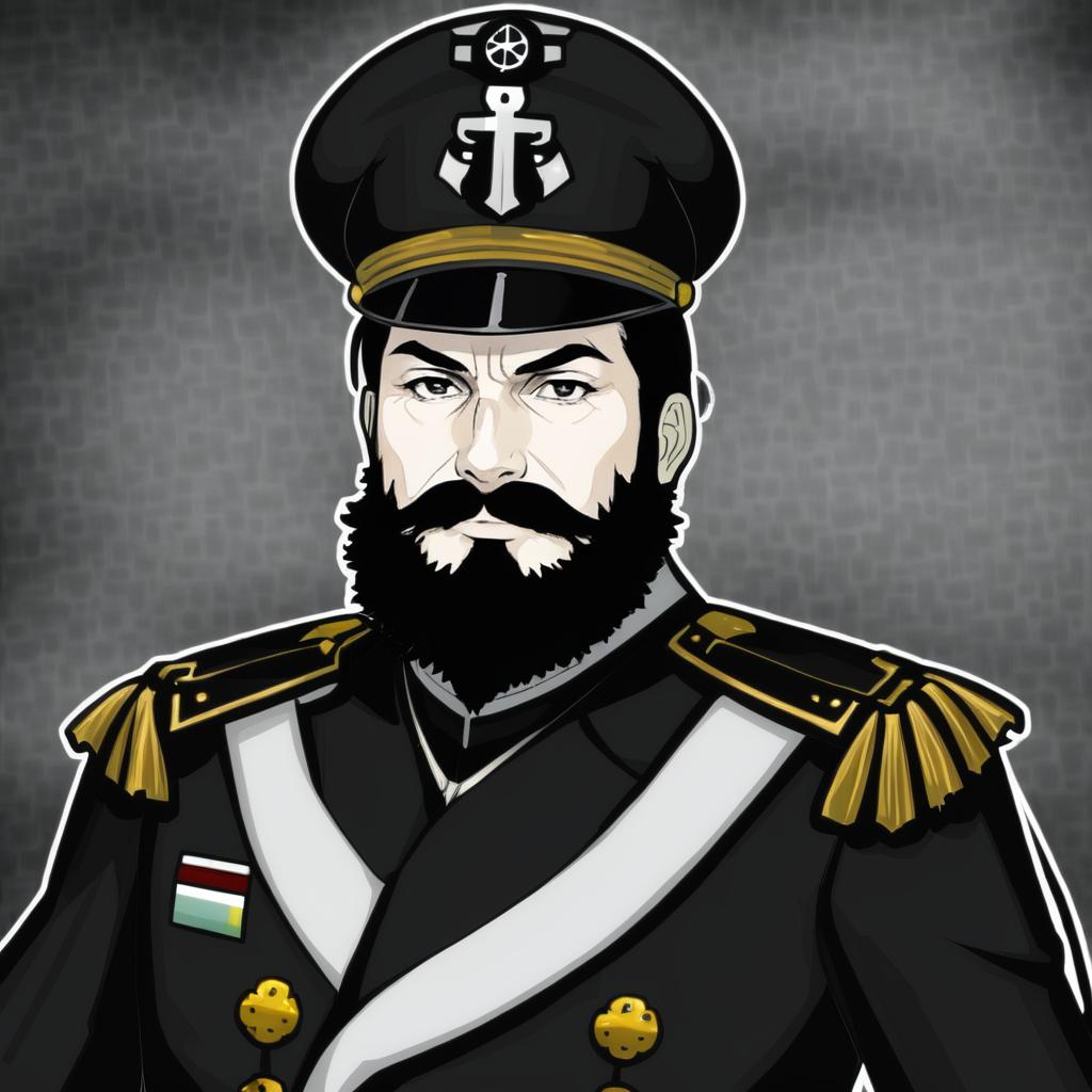 Abyssal admiral (kancolle), kantai collection, 1boy, pale skin, mustache, beard, black hair, naval uniform, naval uniform, hat, by artist michihasu, anime