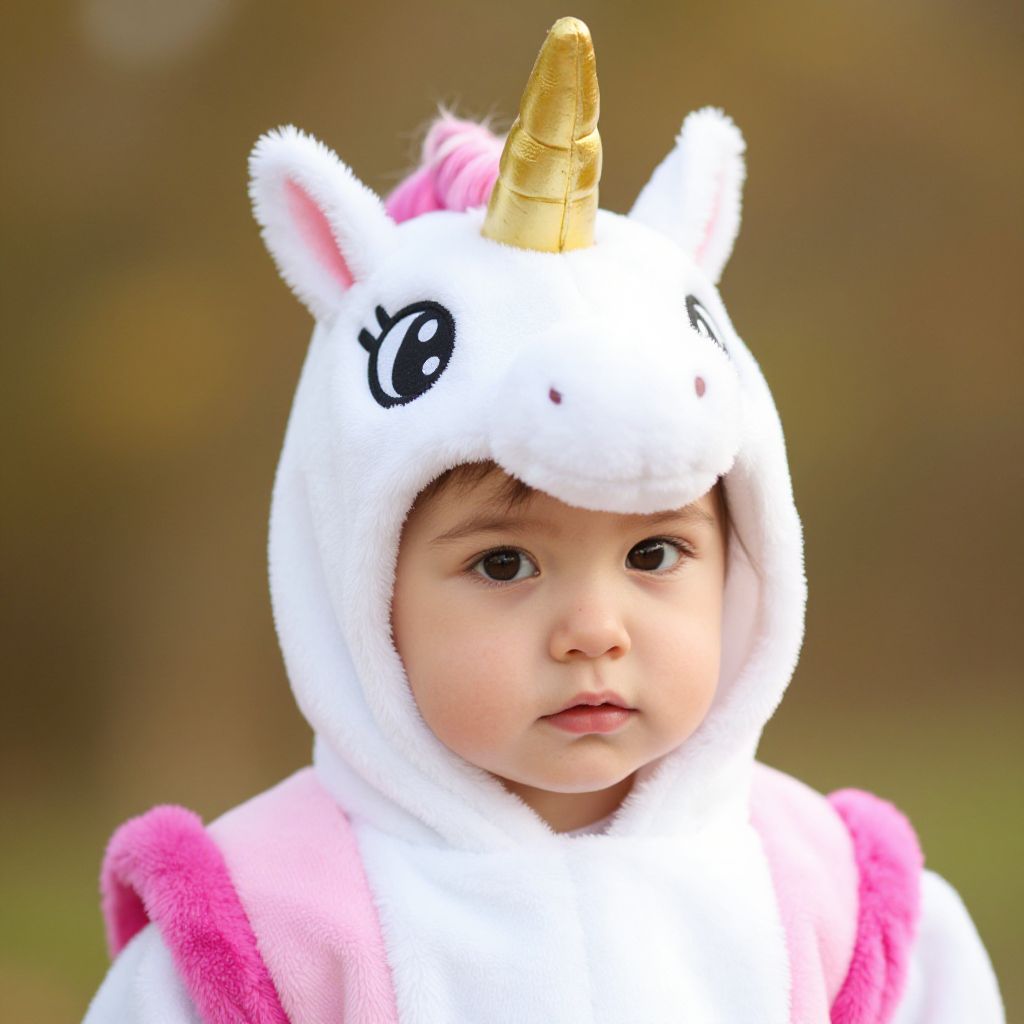 "Unicorn Outfit First Birthday, a close up of a child wearing a unicorn costume"