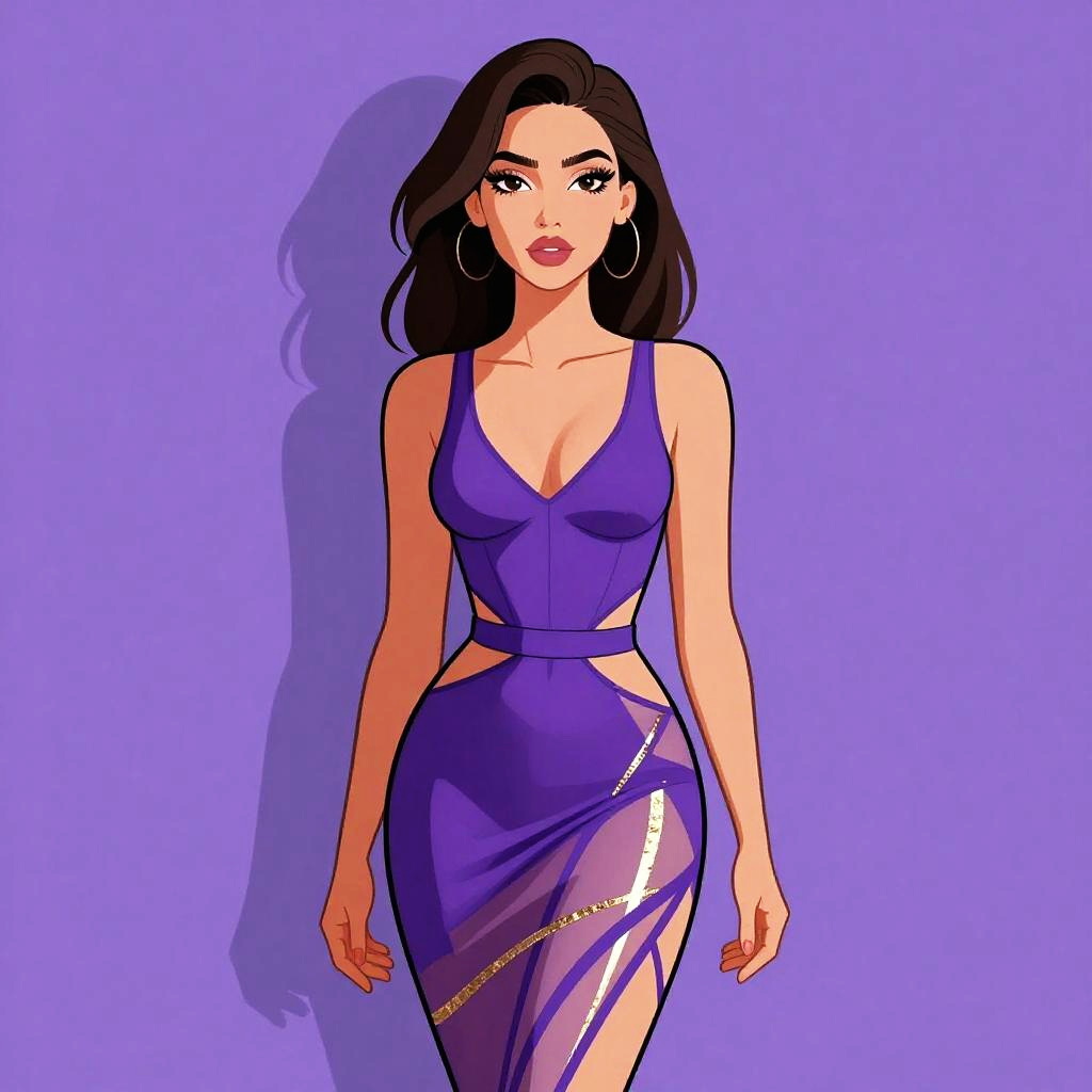 Woman with pretty face and pretty hair. Woman, chic, fitted wrap dress in vibrant fuchsia, V-neckline, long sleeves, ruched detailing at the waist, asymmetrical hem above the knee, large circular silver earrings. --sref 1461