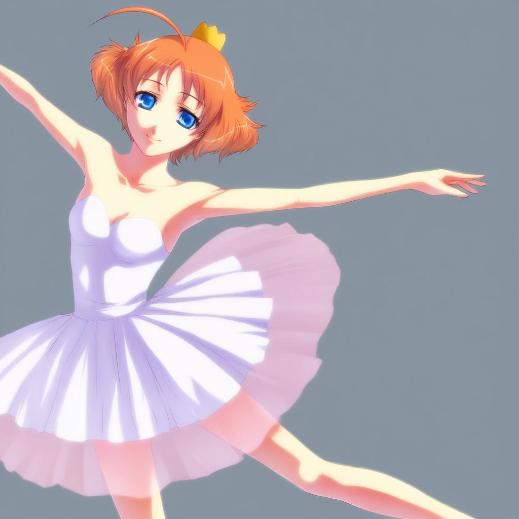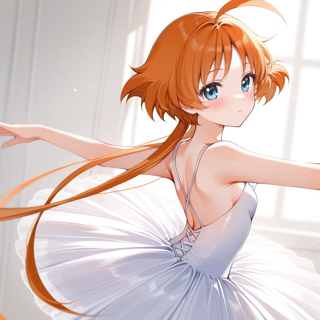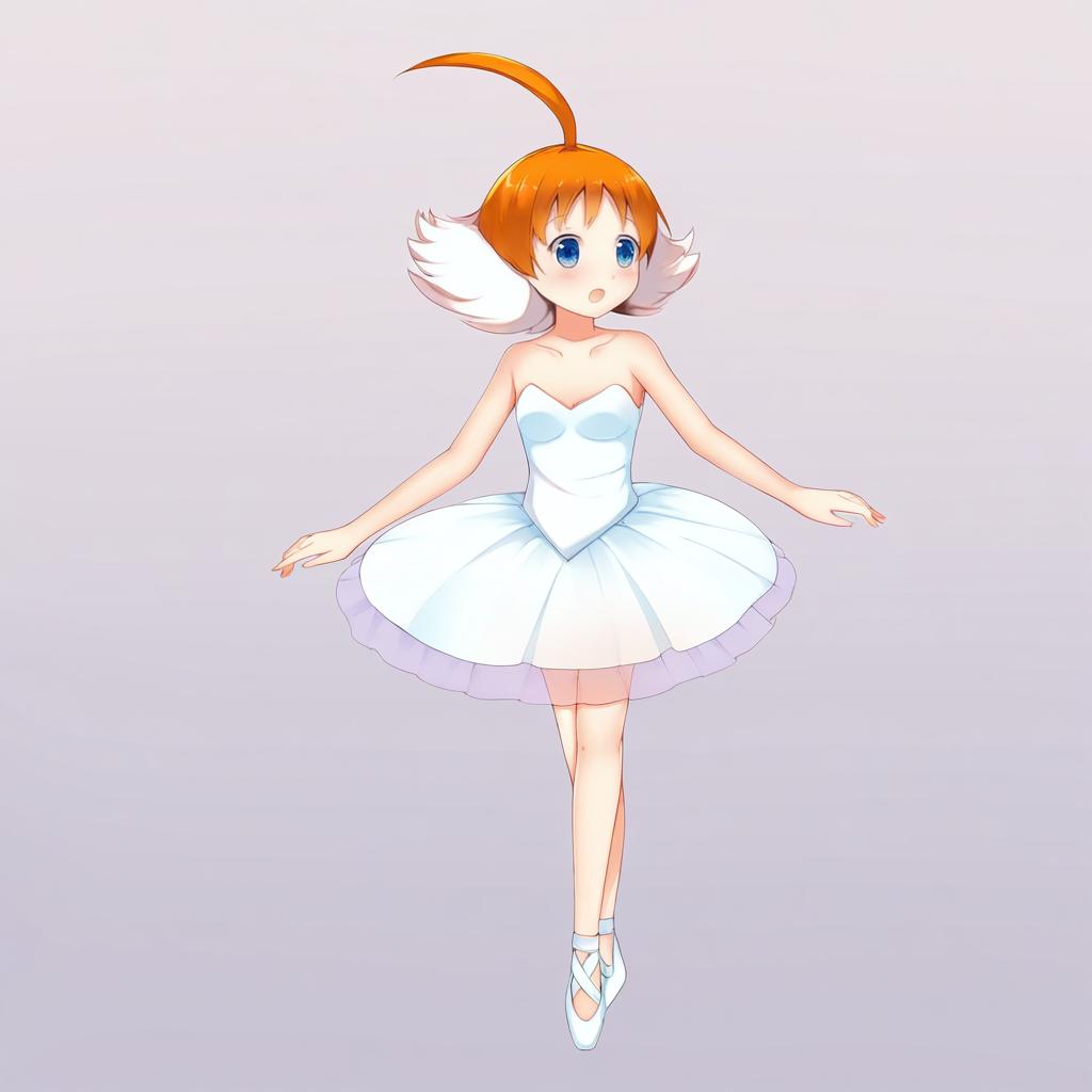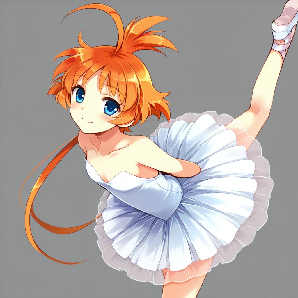 Ahiru (princess tutu), princess tutu, 1girl, blue eyes, orange hair, ahoge, ballerina, tutu, ballerina, by artist scott malin, illustrious