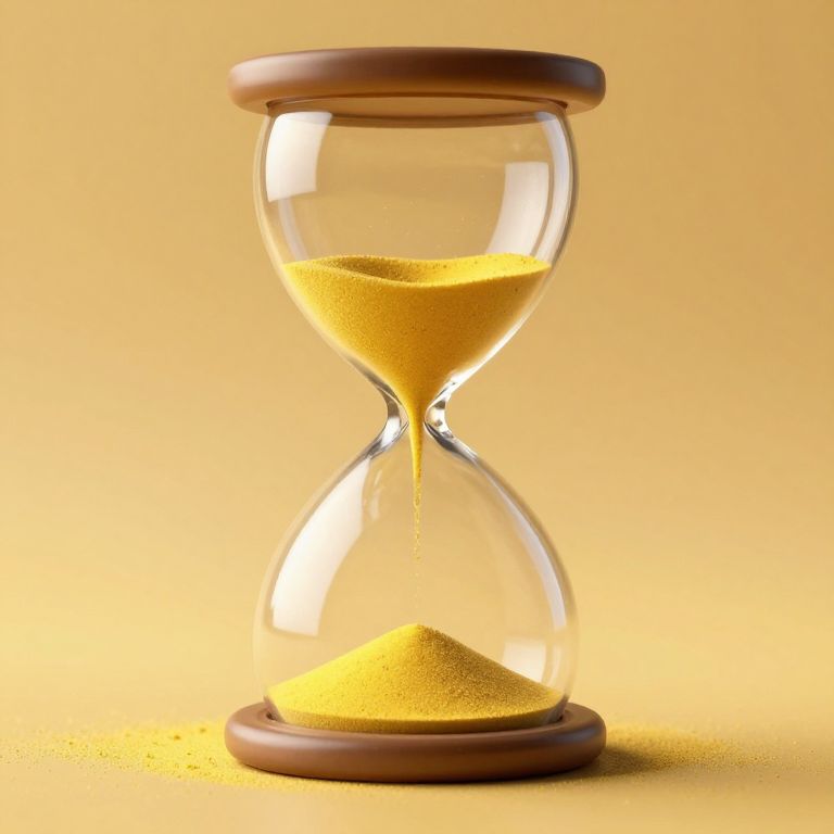 A serene 3D-rendered hourglass, bathed in golden-hour lighting, captures the gentle cascade of suspended yellow sand, symbolizing fleeting moments as they drift gracefully through its fractured neck, evoking a sense of time's delicate dance.