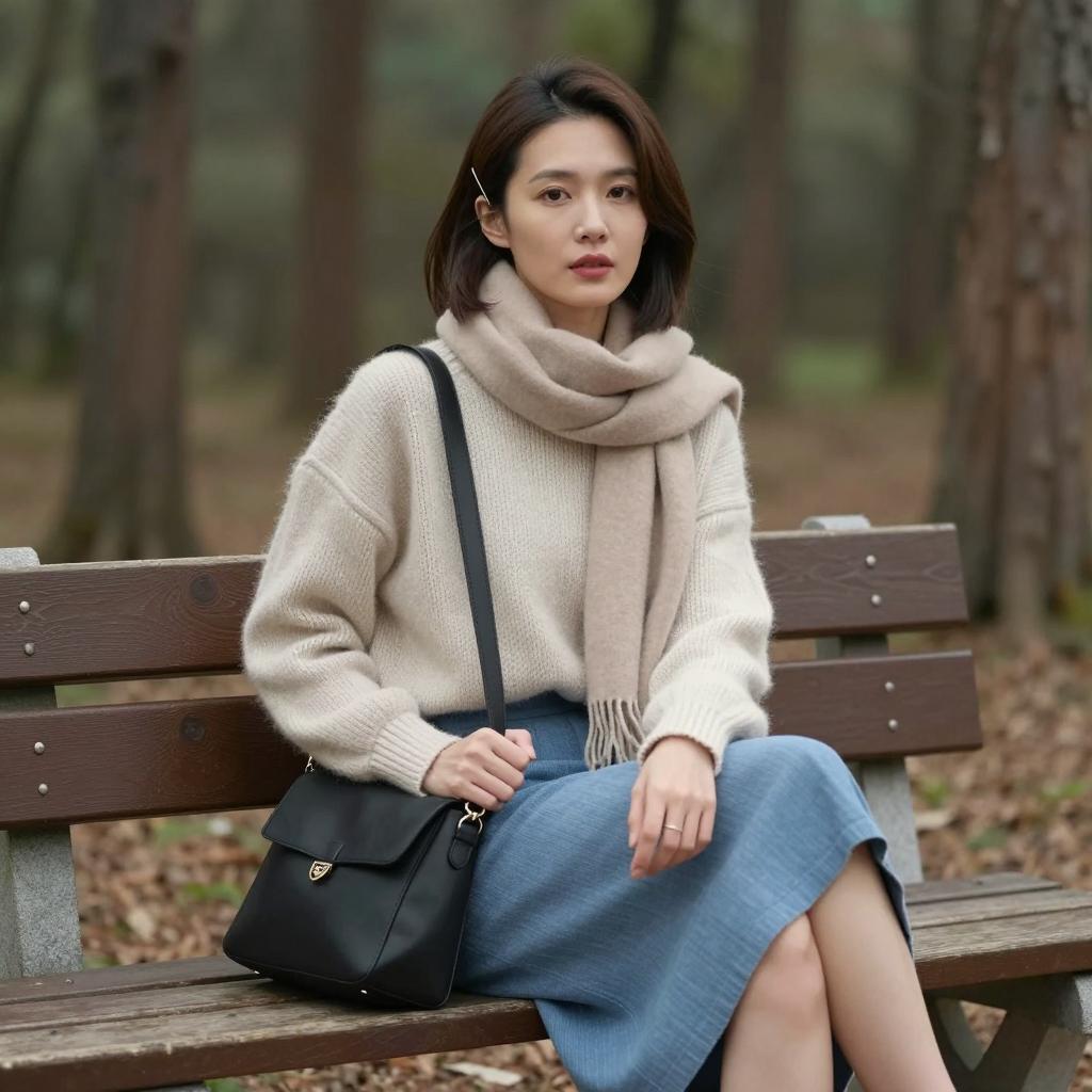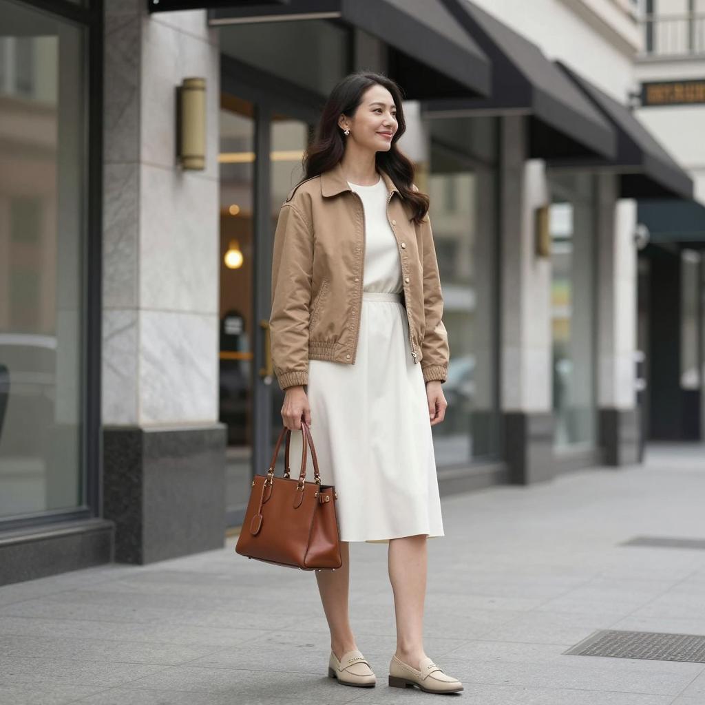Casual Elegance: Asian Woman on Stairs