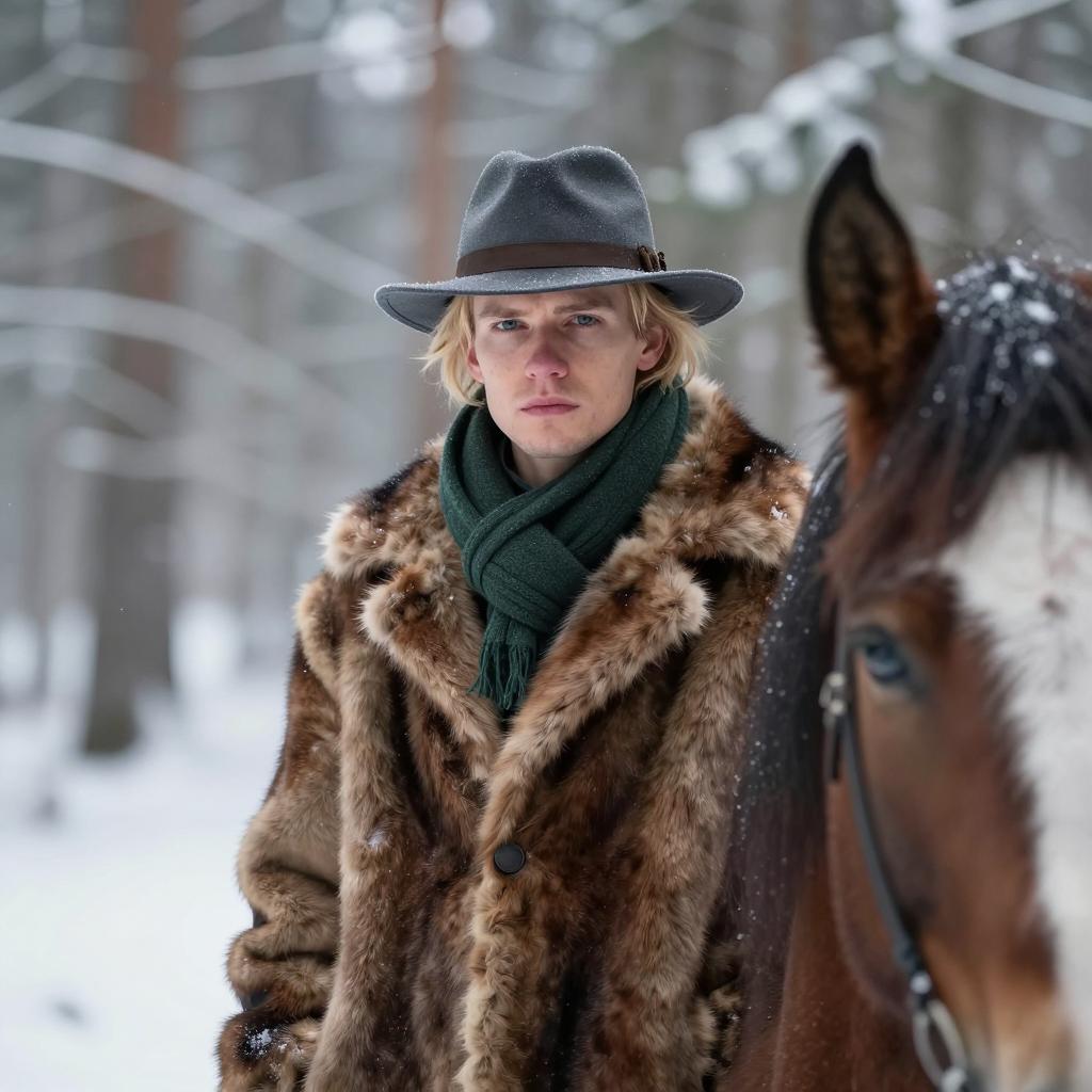 Rugged Man in Snowy Winter Attire