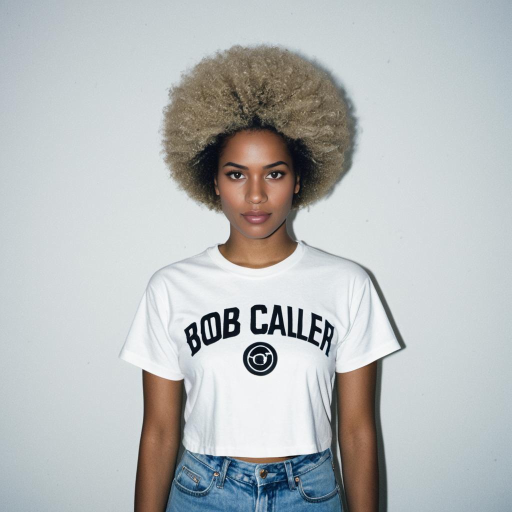 Caller #1 - Bob cosplay outfit, Girl 6 Peter Berg, casual vintage 90s look, faded denim clothing, white t-shirt, short neat afro, smooth shaven face, minimalist background