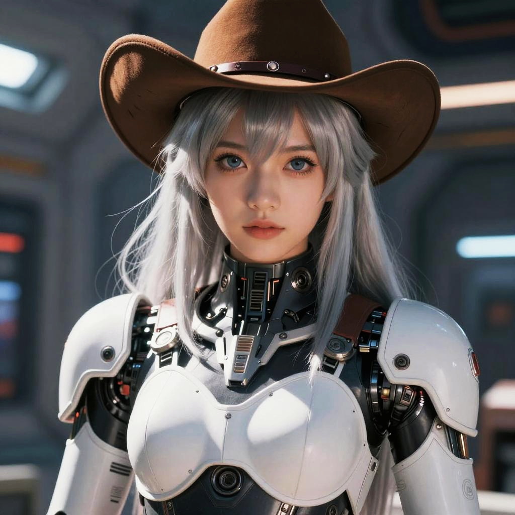 Futuristic Mecha Girl in Cowboy Hat
