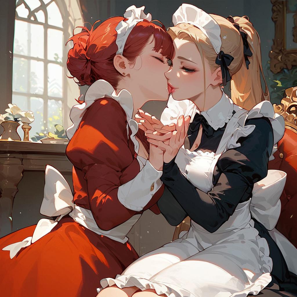 Score_9, score_8_up, score_7_up, source_anime, ocgoatchan, eyes closed, open mouth, smile, big breasts, maid uniform, maid apron, maid headdress, holding plate