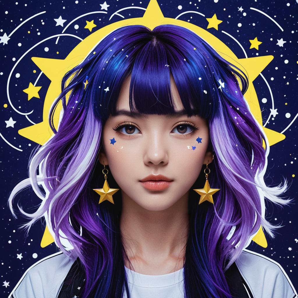 An anime-style portrait of a thoughtful elf with silver eyes with delicate circlet and feathered cloak. Styled with a icy blue and muted lavender and a yellow-white background, vibrant and modern.